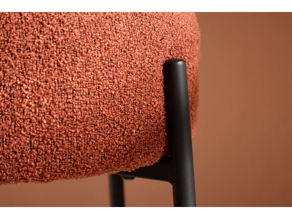 Barová židle Tucson představuje spojení moderní elegance, pohodlí a kvalitního zpracování. Objevte eleganci a pohodlí barové stoličky Tucson, která je dokonalou rovnováhou mezi moderním designem a luxusními materiály. Díky elegantním černým nohám a sedáku čalouněnému rezavě zbarveným buklé se Tucson stává poutavým kouskem, který pozvedne atmosféru v každé místnosti. Černé nohy dodávají barové židli stabilní a robustní konstrukci a zároveň přispívají k minimalistickému a sofistikovanému vzhledu. Rezavě zbarvené buklé na sedáku nabízí nejen vizuální potěšení svým teplým a příjemným tónem, ale také měkký a pohodlný zážitek ze sezení. Textura buklé látky vytváří zajímavý kontrast s hladkými nohami a dodává židli jedinečný a moderní charakter. Barová židle Tucson je ideální pro kuchyňské ostrůvky, bary nebo jako další místo k sezení na společenských setkáních. Její ergonomický design zajišťuje pohodlné sezení po dlouhou dobu, takže je ideální jak pro uvolněné snídaně, tak pro slavnostní setkání. Dodejte svému domovu nádech elegance a pohodlí s barovou židlí Tucson – kusem nábytku, který kombinuje styl s funkčností a zaručeně ohromí vaše hosty.