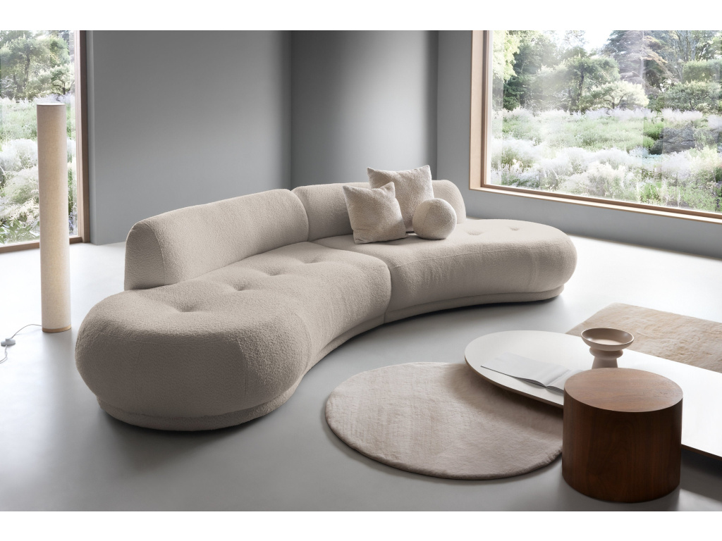 Gio je modulární pohovka, která zaujme hned na první pohled. Její zaoblený tvar dodává interiéru decentní, ale moderní charakter a vnáší do prostoru nádech lehkosti a elegance. Konfigurace COTTL–COTTR s působivou šířkou 350 cm vám umožňuje vytvořit prostornou relaxační zónu, která se stane srdcem obývacího pokoje.
