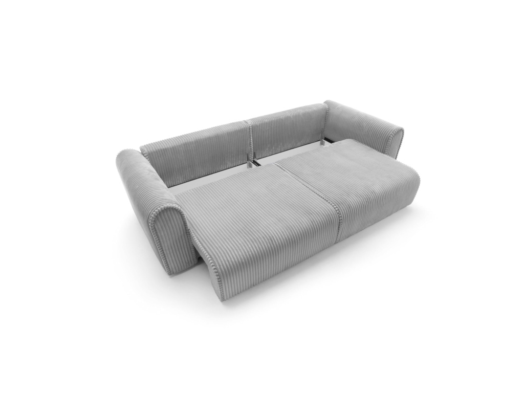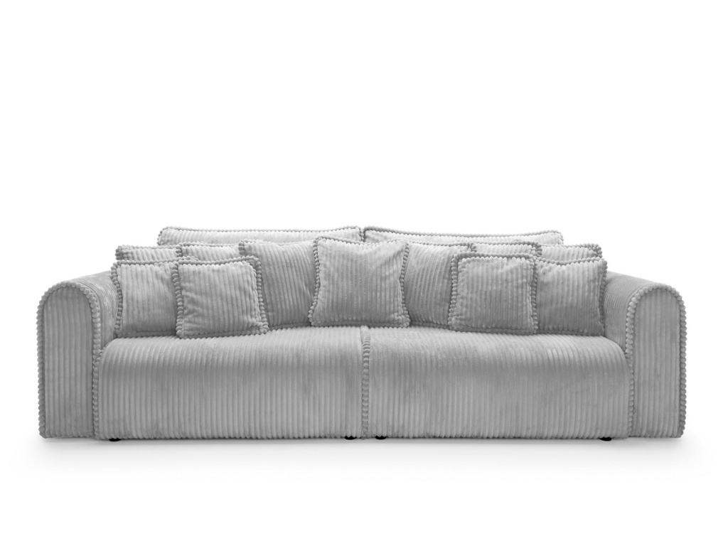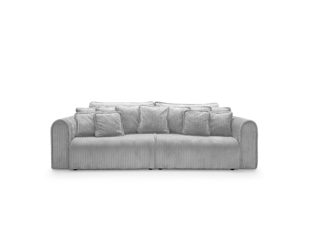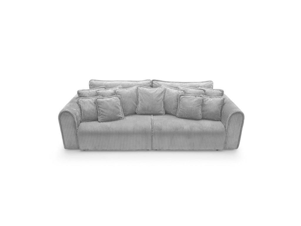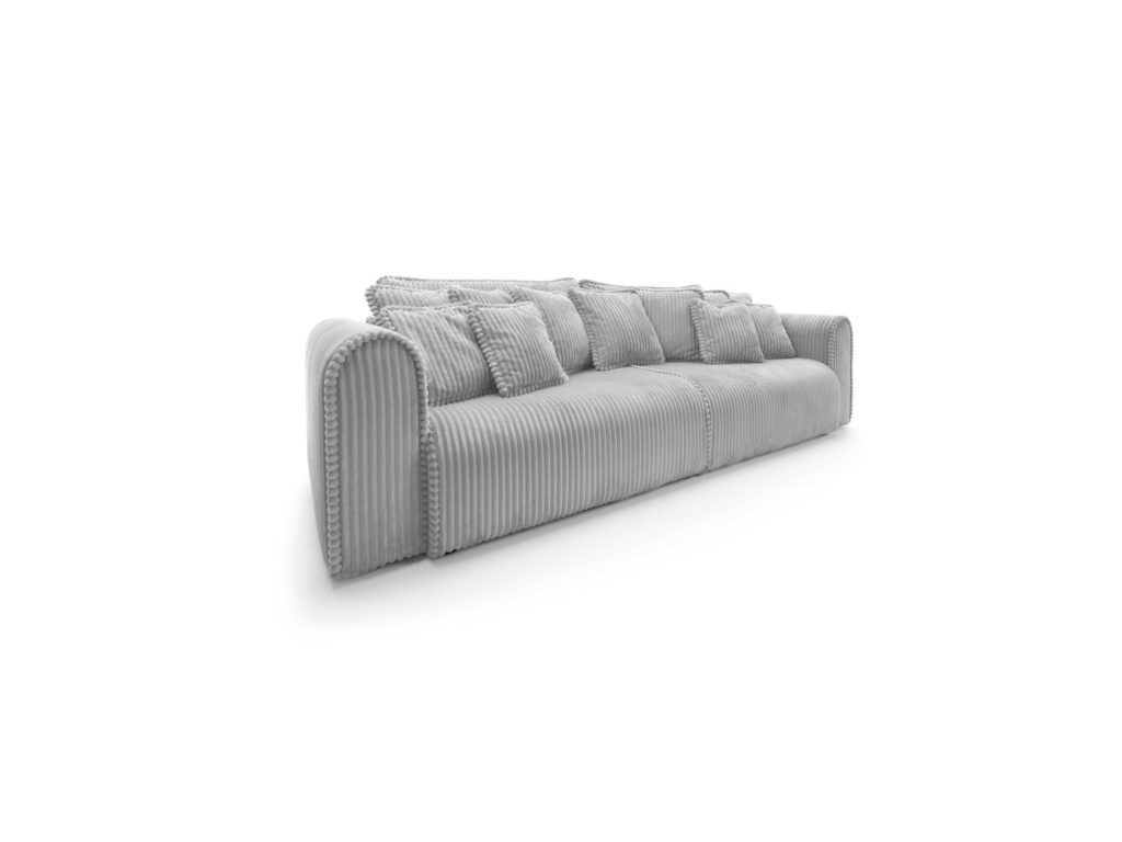 Big Buddy – pohovka s funkcí spaní a úložným prostorem – kombinuje moderní design, maximální funkčnost a výjimečné pohodlí. Její monumentální tvar (šířka 302 cm) okamžitě upoutá pozornost, zatímco zaoblené tvary a svislé prošívání jí dodávají stylový a útulný charakter. Čalouněná manšestrem Tilia 86 – vysoce odolnou látkou proti oděru (90 000–100 000 cyklů Martindale) a vhodná pro domácí mazlíčky – je ideální pro každodenní použití.