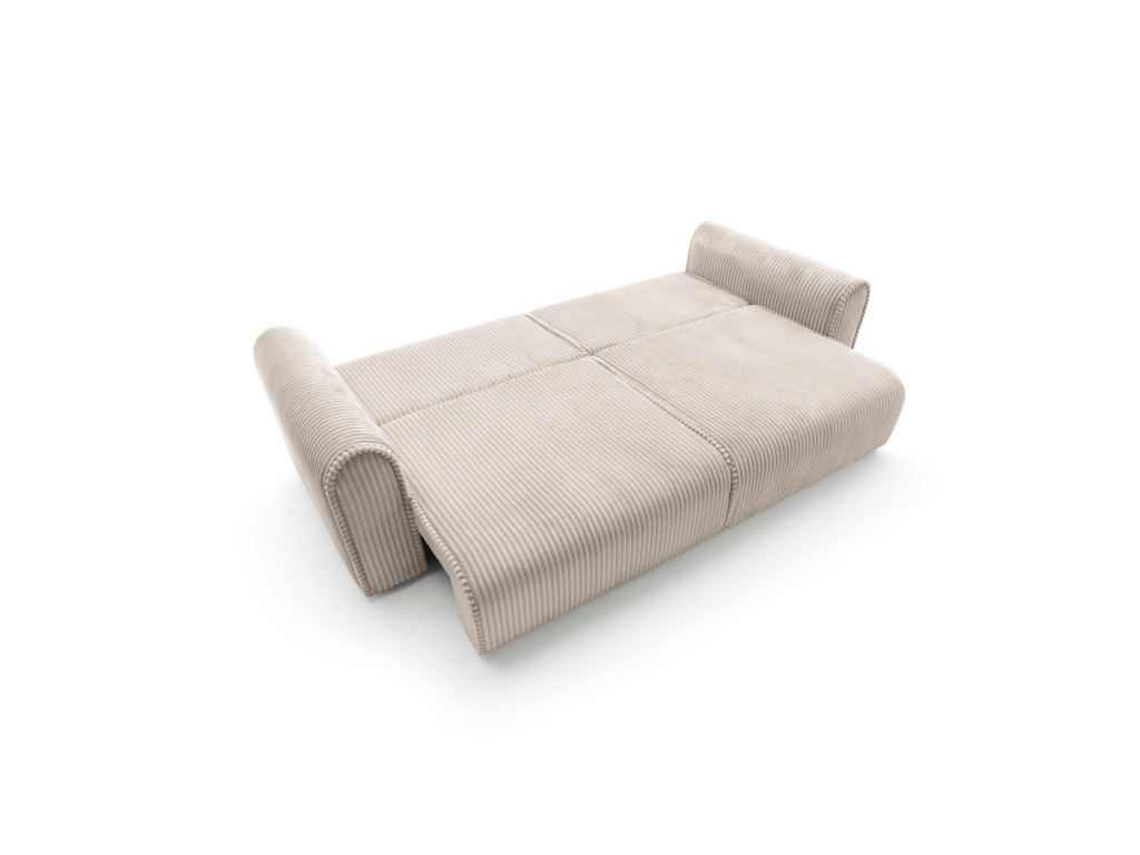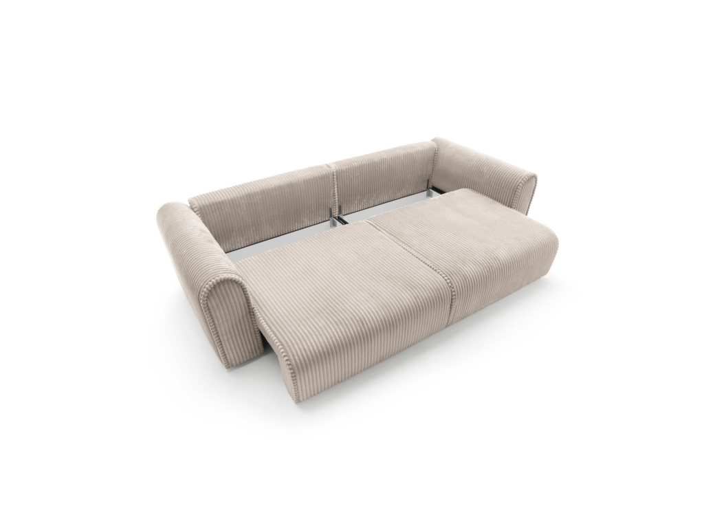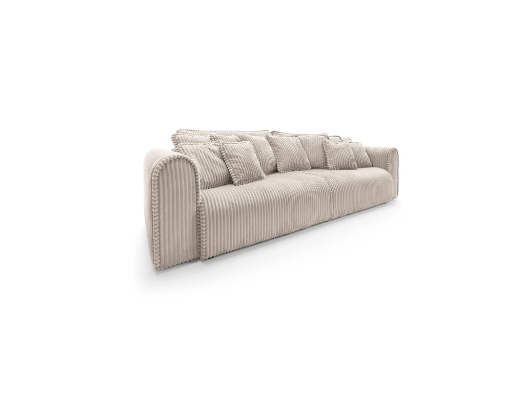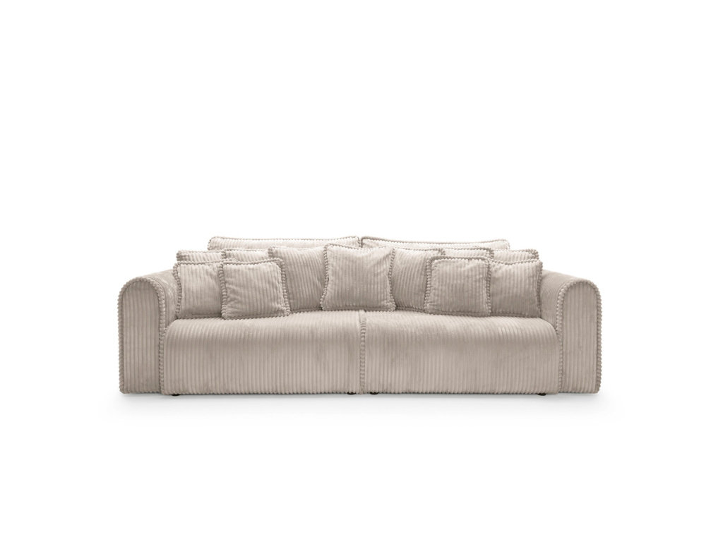 Big Buddy – pohovka s funkcí spaní a úložným prostorem – kombinuje moderní design, maximální funkčnost a výjimečné pohodlí. Její monumentální forma (šířka 302 cm) okamžitě upoutá pozornost, zatímco zaoblené tvary a svislé prošívání jí dodávají stylový a útulný charakter. Čalouněná manšestrem Tilia 11 – látkou s vysokou odolností proti oděru (90 000–100 000 cyklů Martindale) a vlastnostmi vhodnými pro domácí mazlíčky – je ideální pro každodenní použití.