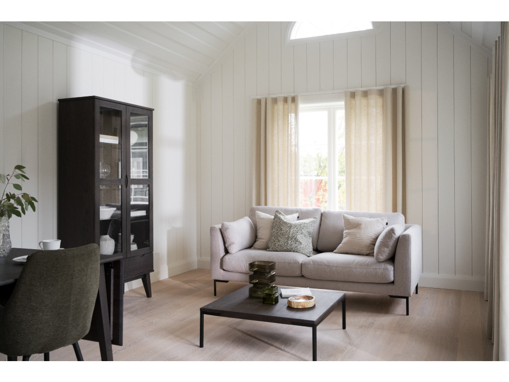 Pohovka Corwin Rita #1 světle béžová pro 2,5 osoby má zaoblené černé kovové nohy. Pohovka má klasický, rovný design s volnými opěradly, které vašemu domovu dodávají elegantní a exkluzivní vzhled. Je k dispozici v několika konfiguracích, aby byla zajištěna kombinace, která se dokonale hodí do vašeho prostoru. Sedák má hadovité pružiny pro rovnoměrné a dlouhotrvající pohodlí. Veškeré dřevo v nábytku má certifikaci FSC®, což znamená, že pochází z odpovědného lesnictví, které bere v úvahu lidi a životní prostředí. Corwin je skladem a je k dispozici v látce Rita světle béžová (#1), ale můžete si také vybrat látku z naší nabídky na zakázku, která obsahuje širokou škálu látek a barev, abyste si mohli ušít pohovku přesně podle svých představ.Doplňkové parametry