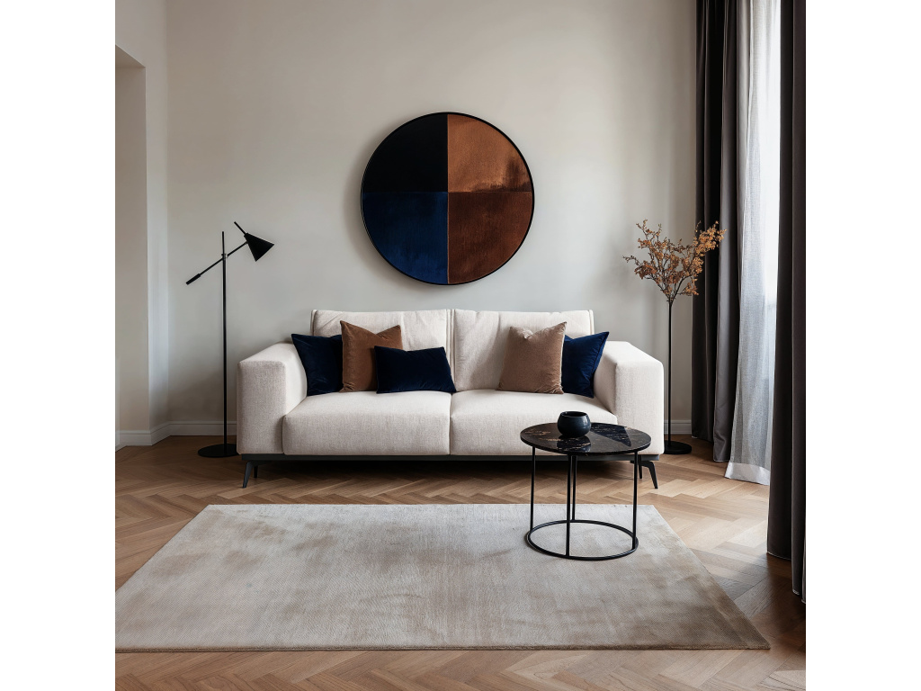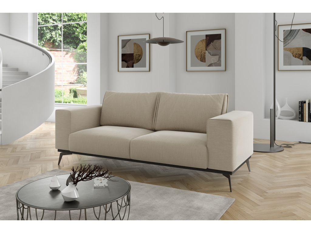 Dvoumístná pohovka Tristan v sobě spojuje modernitu, šarm a eleganci v jednom. Její symetrický tvar s působivými područkami, pohodlnými polštáři a stylovými vysokými nohami vyzařuje lehkost a výjimečnou eleganci. Díky symetrickému designu a geometrickému tvaru se dokonale hodí do moderních prostor. Opěradla zdobená širokým lemováním a základna zdobící černou látkou jsou charakteristickými znaky tohoto modelu.