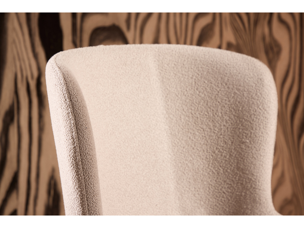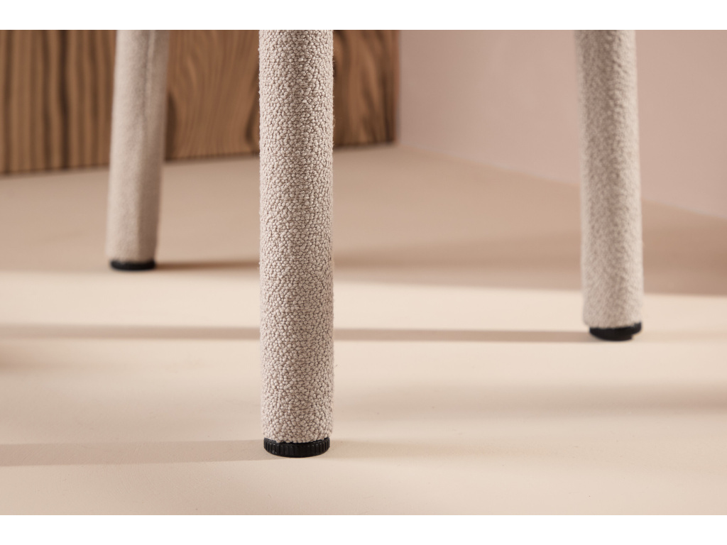 Jemná látka zvýrazňuje tvarování sedáku a působí útulně. Bouclé vlákno podtrhuje nadčasový vzhled a pohodlí.