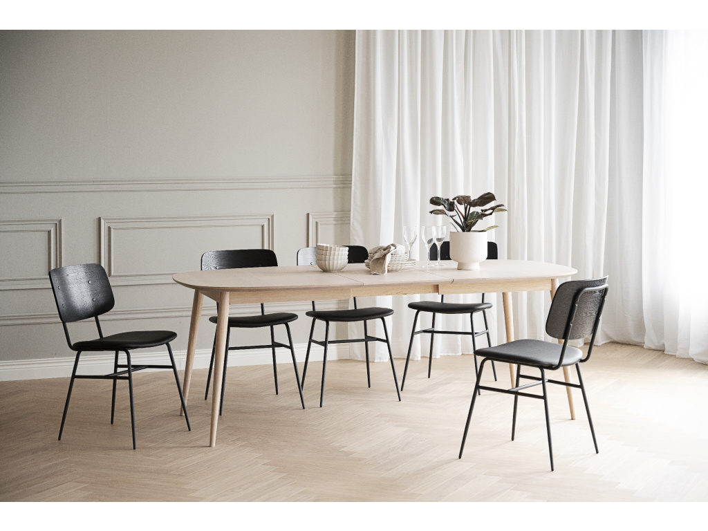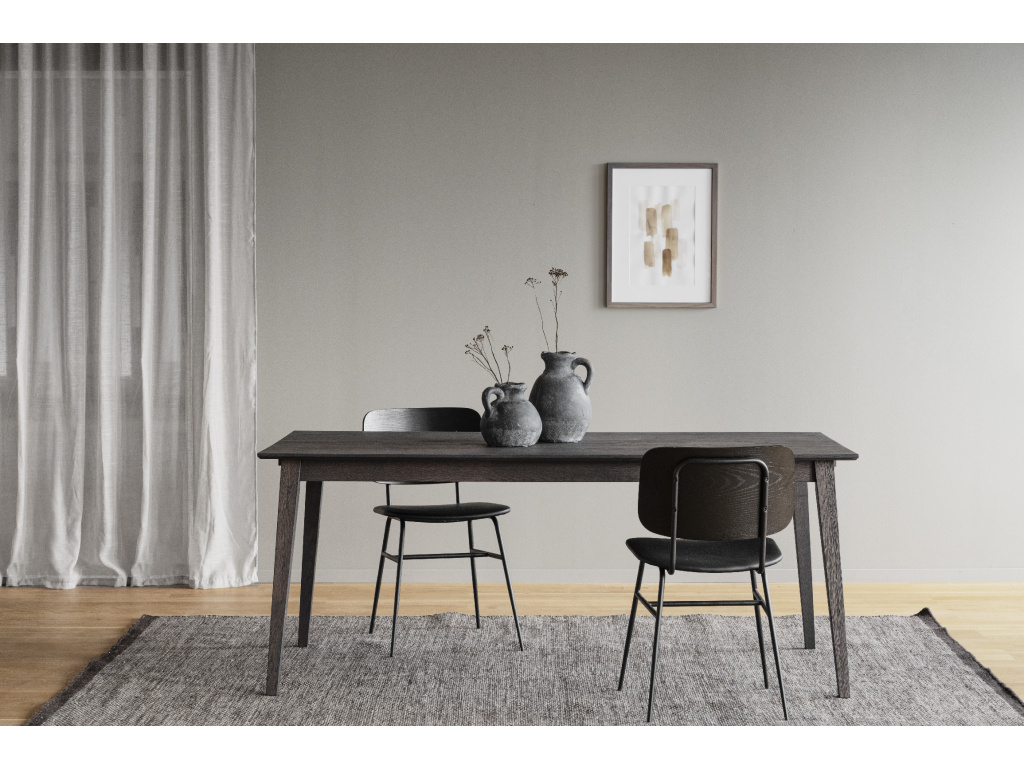 Masivní dřevěná základna dodává pevnost a přírodní výraz. Nohy z lakovaného kovu zaručují stabilitu a snadnou údržbu.