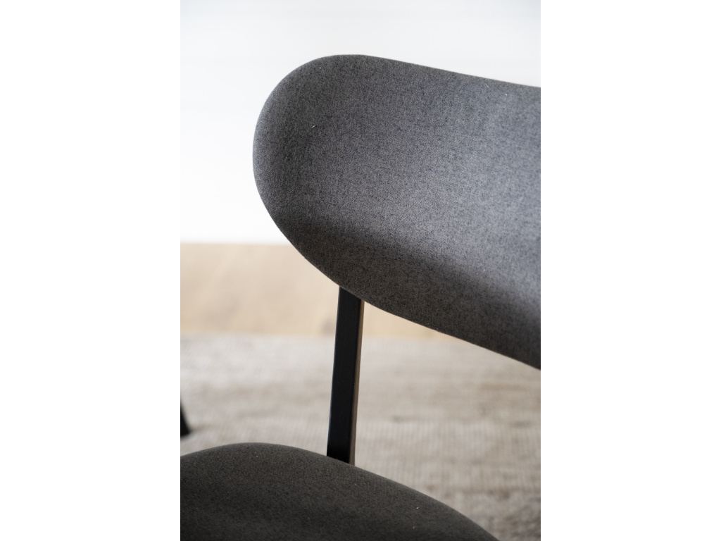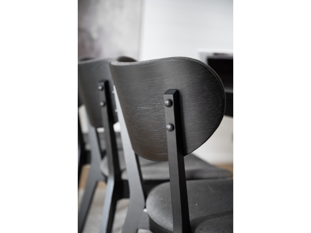 Dřevěné nohy přidávají židli přirozené teplo i stabilitu. Kovová konstrukce podtrhuje moderní vzhled a dlouhou životnost.