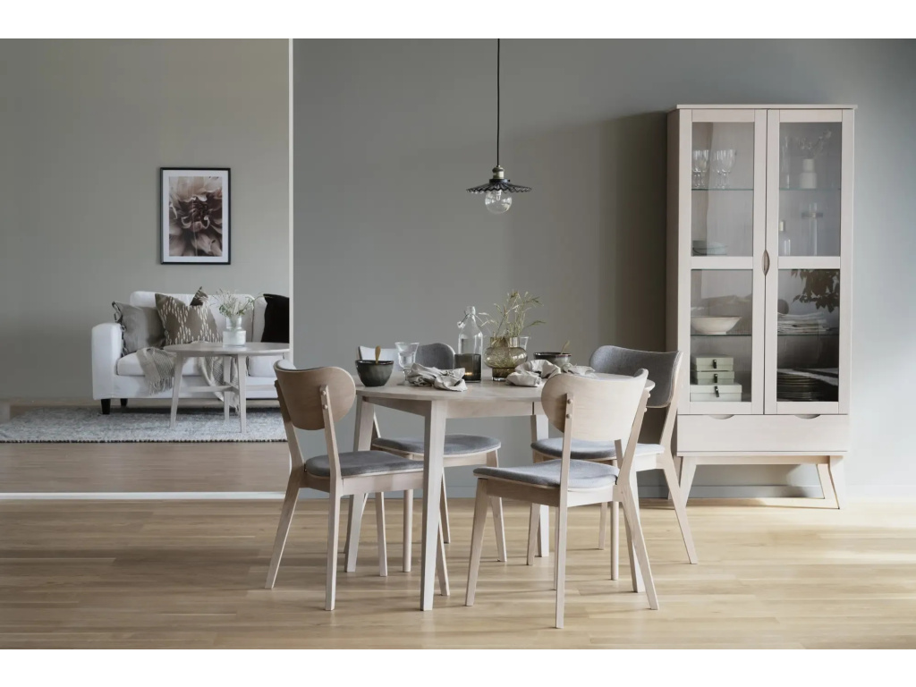 Měkká tkanina dodává sezení útulnost a vizuální lehkost. Čalounění působí příjemně na dotek a dobře drží tvar.