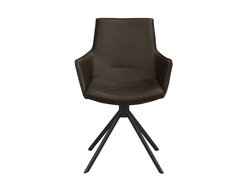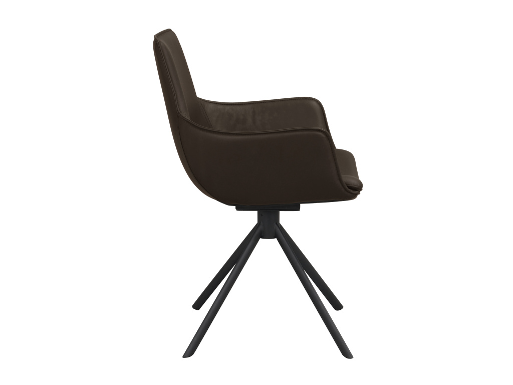 Kožená otočná židle s područkami Lowell | Hnědé