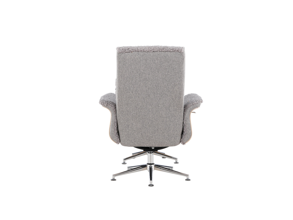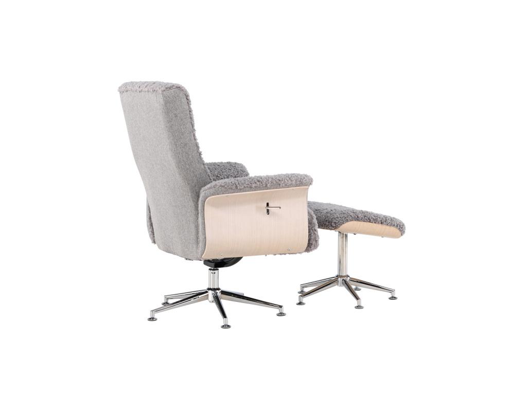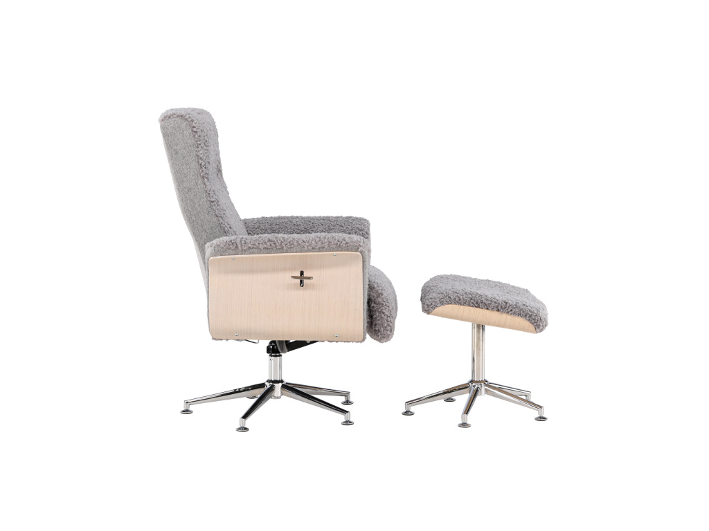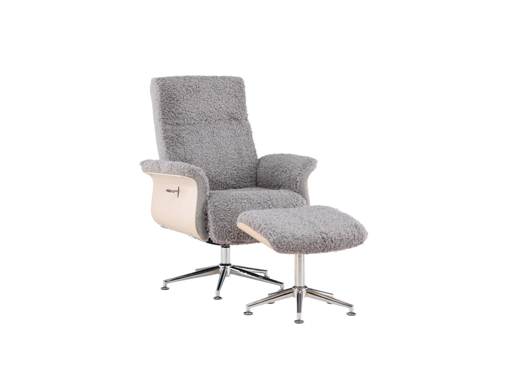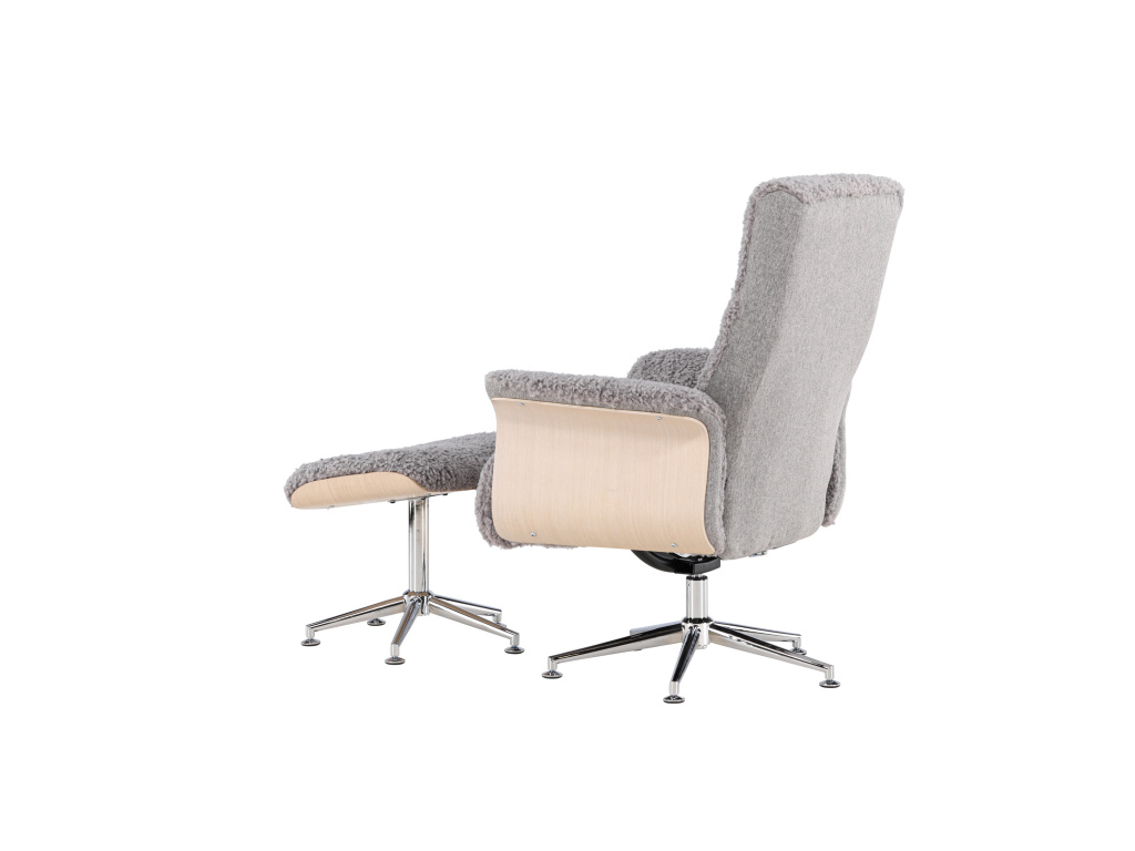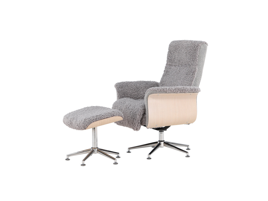 Křeslo Hagön představuje nadčasovou investici do vašeho domova! Díky pečlivému designu a promyšleným detailům představuje toto křeslo mistrovské dílo severského designu. Potažené měkkou, šedou látkou připomínající kožešinu, poskytuje Hagön od prvního okamžiku pocit luxusu a pohody. Dřevěný rám v bíle natřené barvě přispívá k vzdušné a moderní estetice, která se bez problémů začlení do jakéhokoli interiéru. Elegantní chromované nohy dodávají designu jemný lesk. Područky, příjemně zaoblené a navržené pro relaxaci, a doprovodná podnožka poskytují extra oporu a pohodlí pro unavené nohy. Opěradlo je navíc nastavitelné pro maximální pohodlí. Ať už si chcete vychutnat knihu nebo se setkat s přáteli, Hagön je pro to ideálním místem!
