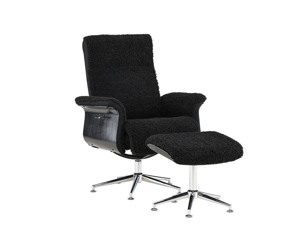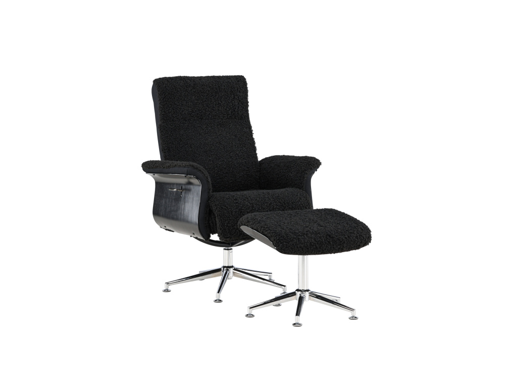 Vkročte do světa pohodlí a stylu s křeslem Hagön! Toto měkké křeslo z tmavě šedé látky připomínající kožešinu vás přivítá okamžitým komfortem a útulností. Flexibilní opěradlo lze nastavit tak, aby poskytovalo dokonalý komfort při čtení knihy nebo jen tak relaxaci. Pro prvotřídní zážitek ze sezení je křeslo Hagön dodáváno také sladěnou podnožkou pro extra oporu a relaxaci nohou. S pohodlně zaoblenými područkami a elegantním černým rámem, doplněným chromovanými nohami, nabízí toto křeslo moderní estetiku, která harmonicky zapadne do každé místnosti. Díky severskému designu a bezkonkurenčnímu pohodlí je Hagön nezbytným doplňkem každé domácnosti, která klade důraz na styl.