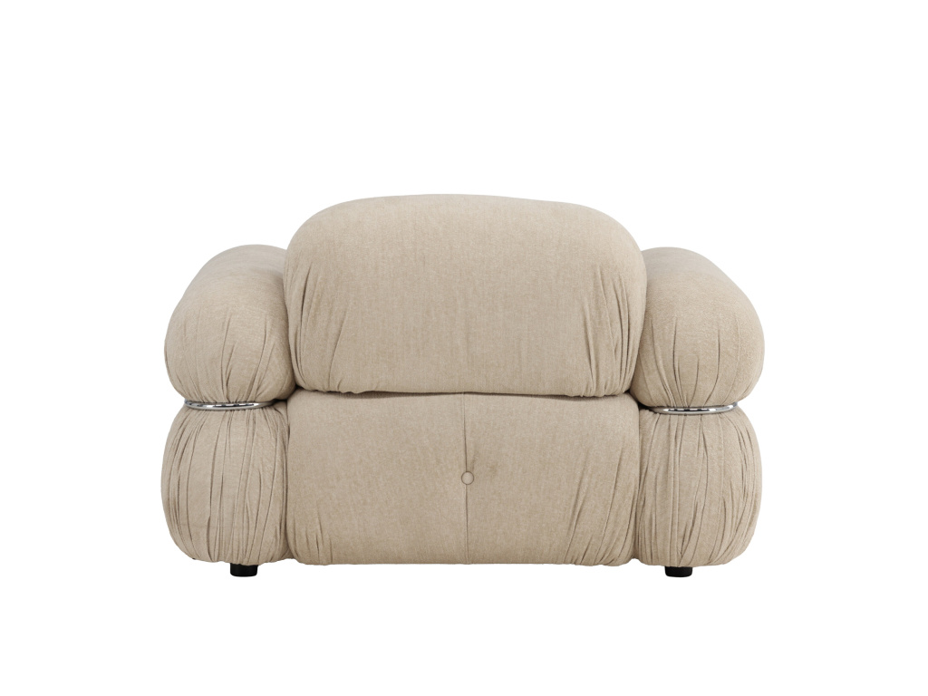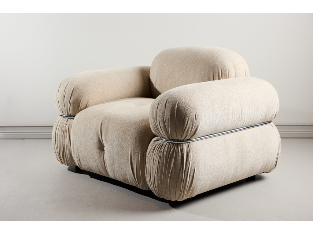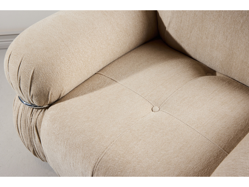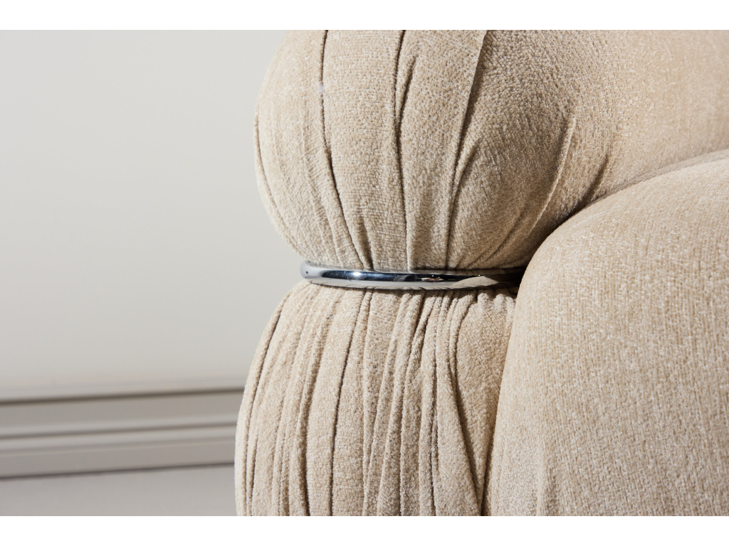 Křeslo Mika představuje spojení moderní elegance, pohodlí a kvalitního zpracování. Pozdravte křeslo Mika – křeslo, do kterého se budete toužit vracet domů. Mika je velké a prostorné křeslo, které vás zve k dlouhým a relaxačním chvílím. Díky svému modernímu a elegantnímu designu je perfektním doplňkem vaší pohovky – nebo stylovým samostatným kouskem v obývacím pokoji. Měkké béžové čalounění nabízí teplý a nadčasový vzhled, zatímco stříbrné detaily dodávají moderní nádech. Mika se nejen pohodlně sedí – ale svou sebevědomou přítomností pozvedá celou místnost.