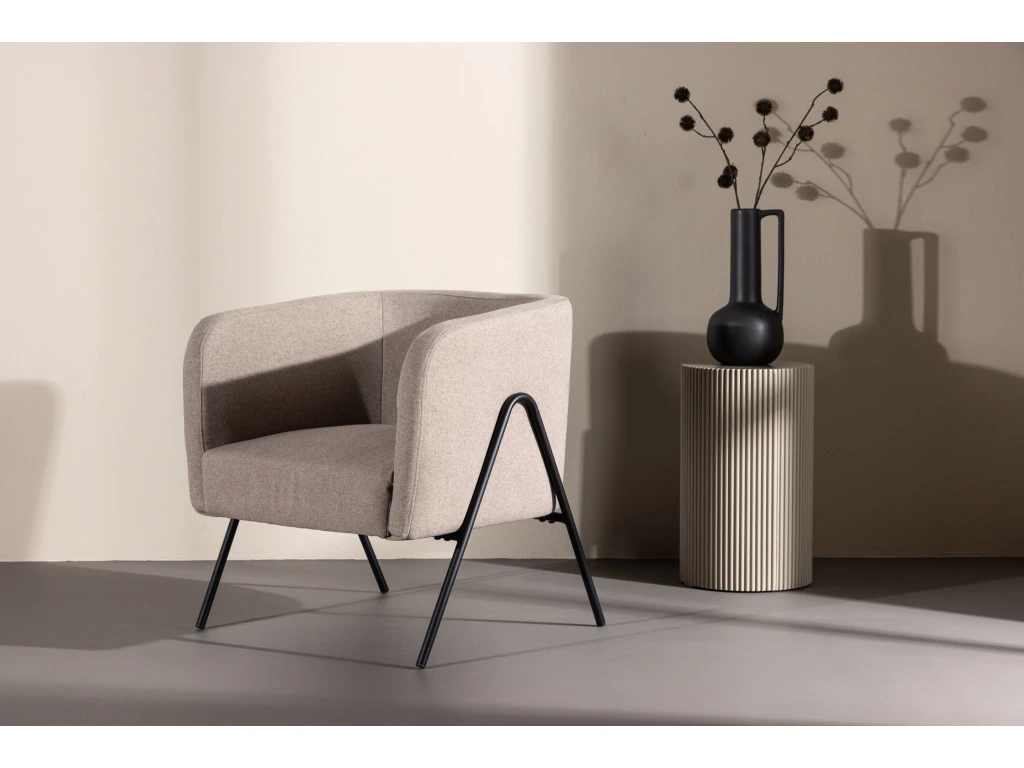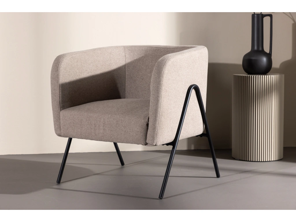 Křeslo Rika představuje spojení moderní elegance, pohodlí a kvalitního zpracování. Působivé, že? Zažijte jednoduchost s promyšlenými detaily s naším novým křeslem Rika. S černými kovovými nohami vkusně umístěnými na vnější straně rámu dodává klasickému designu moderní nádech. Zemitá látka dodává každé místnosti hřejivý a příjemný pocit. Toto křeslo není jen praktickým kusem sezení, je to detail interiéru, který vytváří atmosféru stylu a pohodlí. Zařiďte si domov osobním nádechem vytříbené elegance s křeslem Rika.