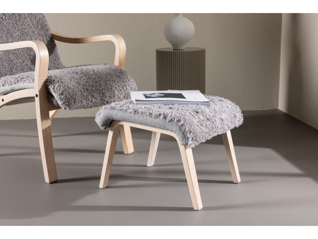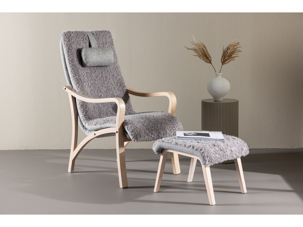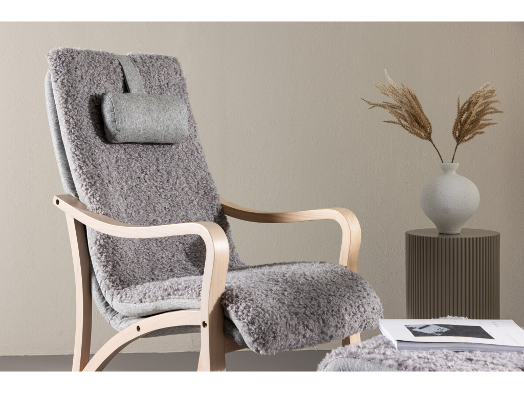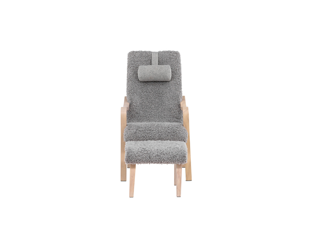Křeslo s podnožkou FARO představuje spojení moderní elegance, pohodlí a kvalitního zpracování. Křeslo Fårö ztělesňuje nadčasovou eleganci skandinávského designu! Díky příjemné estetice a brilantnímu pohodlí je Fårö tou nejlepší volbou, která pozvedne váš interiér severskou eleganci. Toto sofistikované křeslo se vyznačuje měkkými tvary a jasně definovanými liniemi v masivní dubové dýhované konstrukci, která mu dodává klasický charakter. Světle šedá látka, připomínající měkkou kožešinu, nejen odráží pocit rafinovaného luxusu, ale také vybízí k relaxaci a příjemnému teplu. Spolu s křeslem získáte odpovídající podnožku a polštářek pro větší pohodlí a relaxaci.
