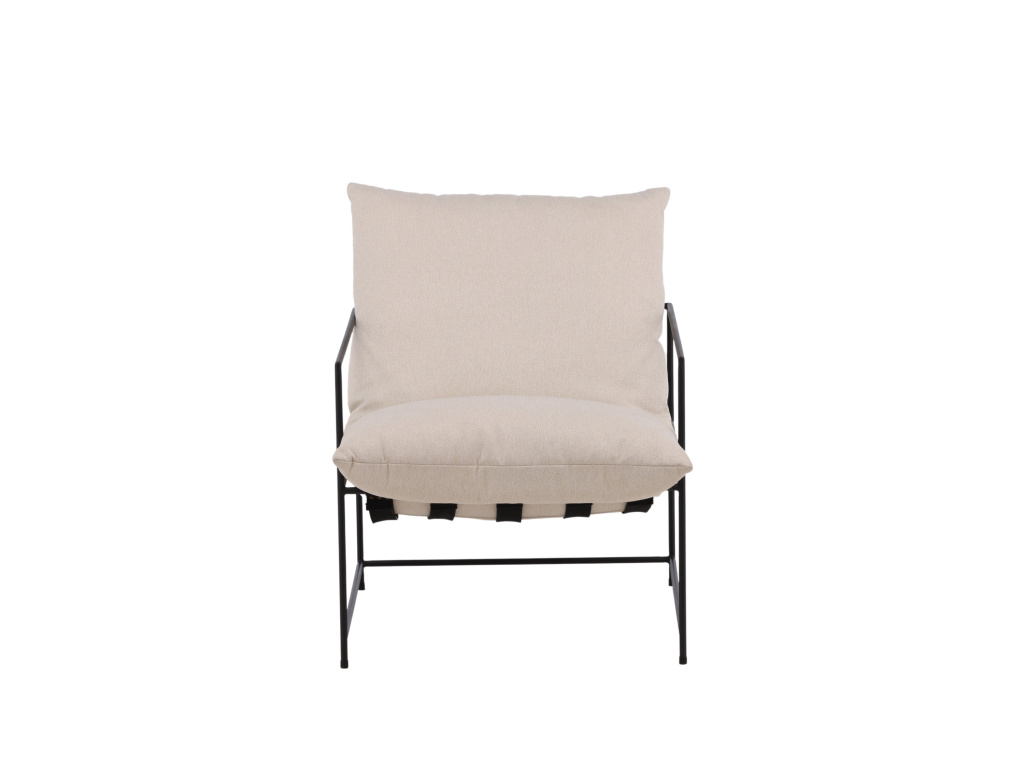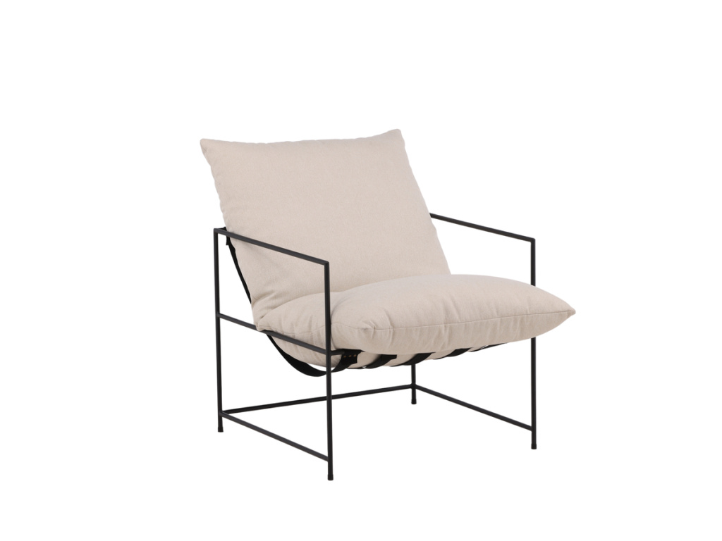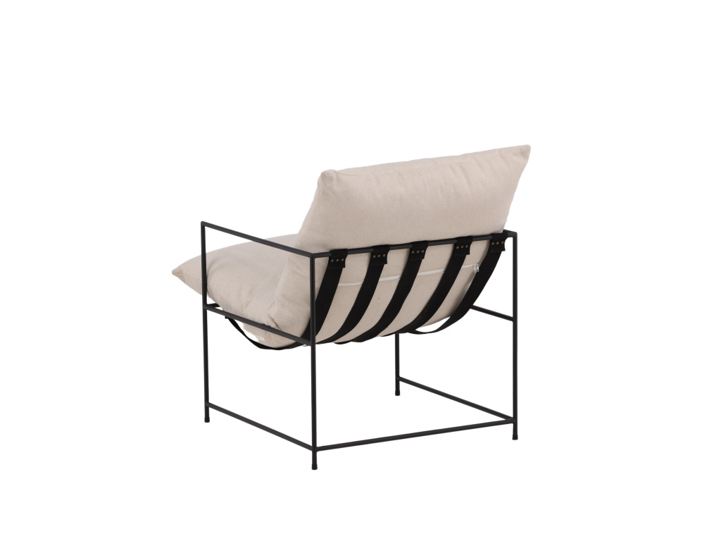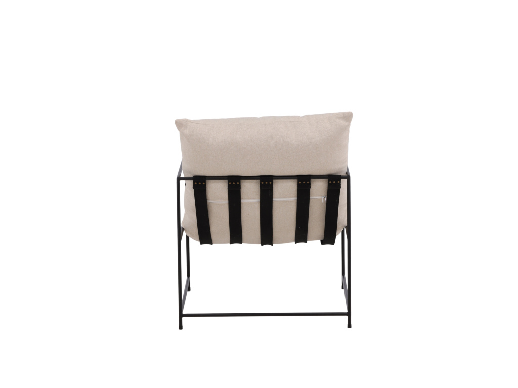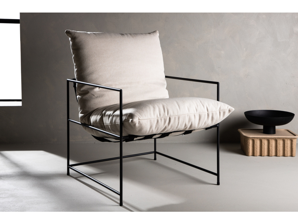 Křeslo Sedalia představuje spojení moderní elegance, pohodlí a kvalitního zpracování. Moderní, stylové a pohodlné - zkrátka křeslo! Toto trendy křeslo patří do série Sedalia a má minimalistický rám z úzké černé oceli se dvěma měkkými polštáři jako opěradly a posledním polštářem z béžové lněné látky. Dokonalá kombinace minimalismu, vysokého pohodlí a nadčasové barvy dělá z tohoto křesla rychlé místo v domácnosti a vydrží dlouho!