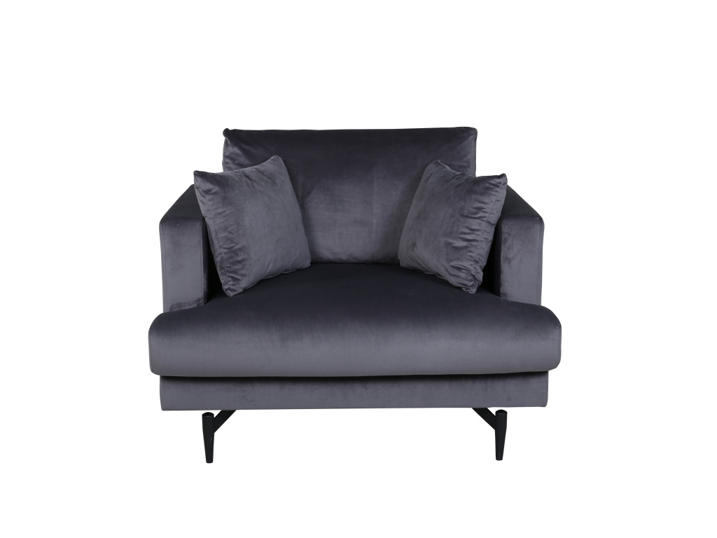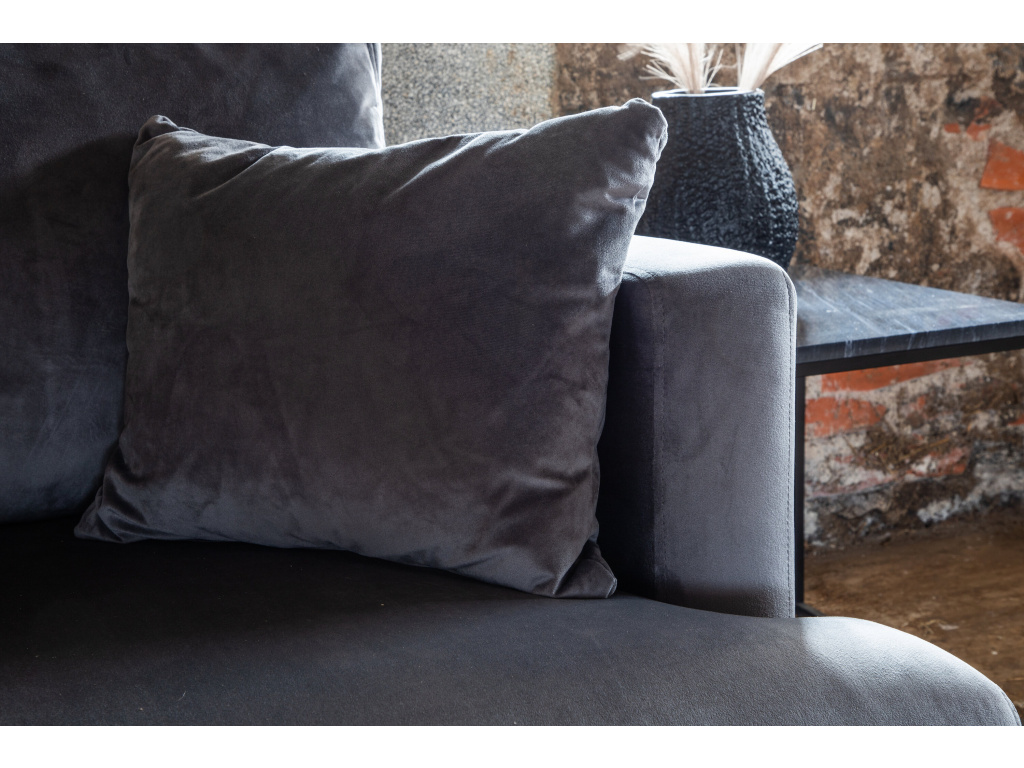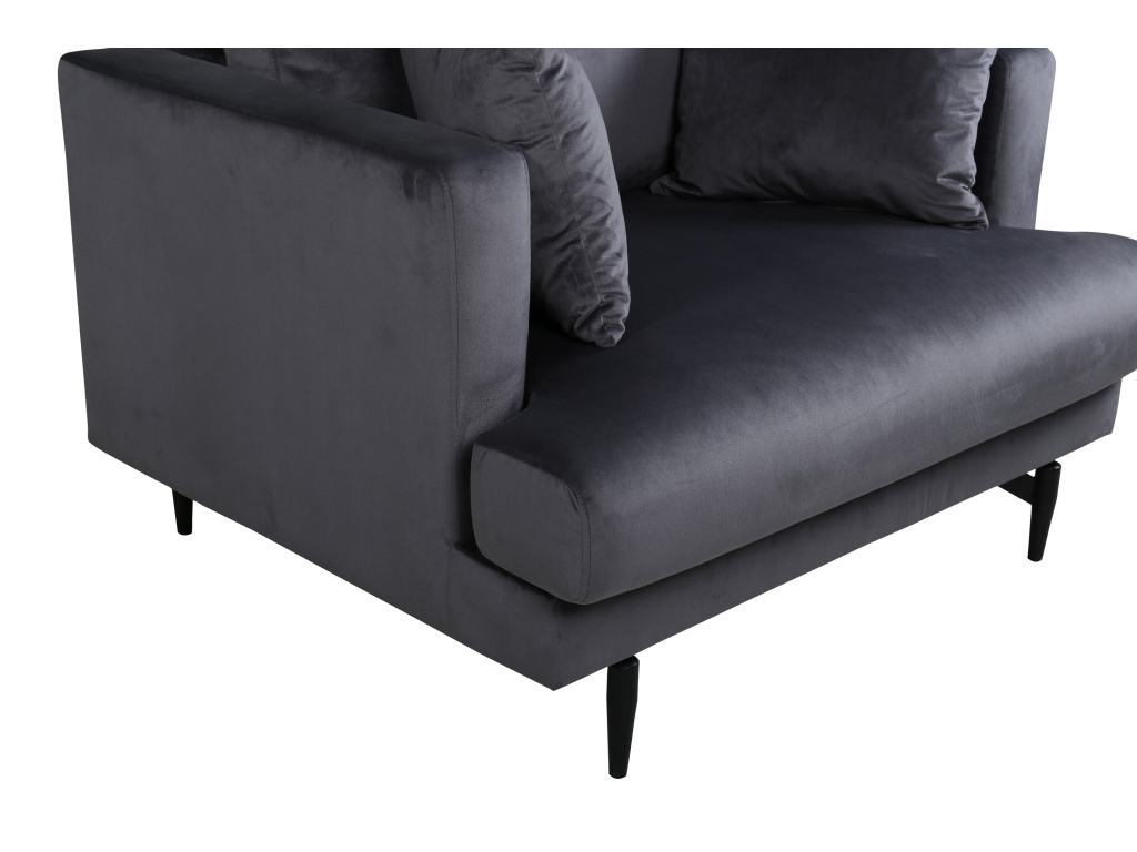 Zařiďte si domov stylově, pohodlně a příjemně útulným křeslem ze série Sofia! Design je minimalistický s rovnými severskými tvary, měkkými polštáři a elegantním sametovým čalouněním v příjemném tmavě šedém odstínu. Nohy z černého práškově lakovaného kovu dodávají křeslu stylový šmrnc a přispívají k elegantnímu ústřednímu bodu. Neuvěřitelně promyšlený celkový design s čalouněným opěradlem umožňuje umístit křeslo doprostřed místnosti. Zařiďte si ho samostatně jako stylovou ikonu nebo v kombinaci s odpovídající sedací soupravou.