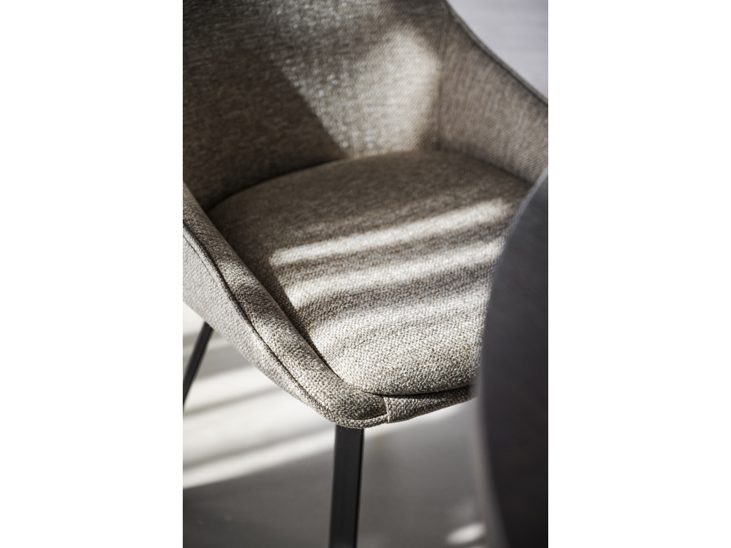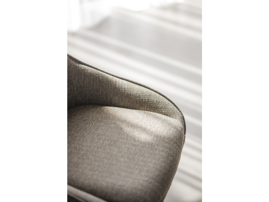 Měkká tkanina dodává sezení útulnost a vizuální lehkost. Čalounění působí příjemně na dotek a dobře drží tvar.