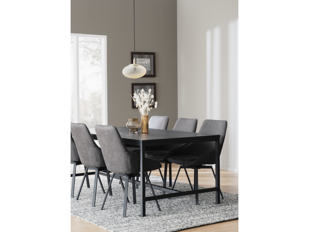 Kovová konstrukce podtrhuje moderní vzhled a dlouhou životnost. Otočný sedák usnadňuje manipulaci a zvyšuje komfort při stolování.
