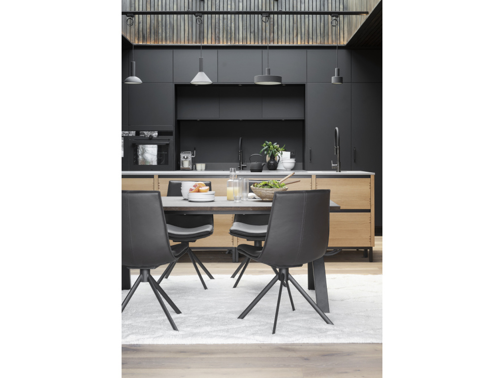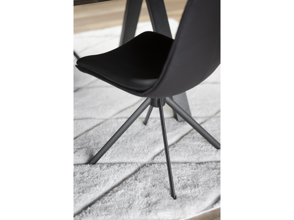Nohy z lakovaného kovu zaručují stabilitu a snadnou údržbu. Otočný sedák usnadňuje manipulaci a zvyšuje komfort při stolování.