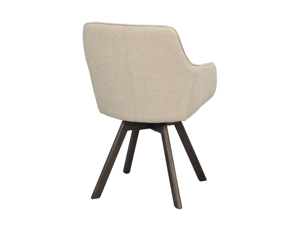 Dřevěné nohy přidávají židli přirozené teplo i stabilitu. Kovová konstrukce podtrhuje moderní vzhled a dlouhou životnost. Díky otočné funkci je sezení pohodlné a pohyb přirozený.