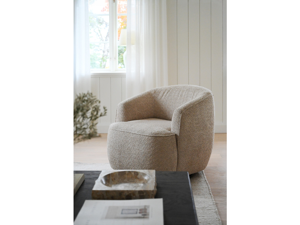 Rozkládací křeslo Dermot Anna #2 světle béžová je čalouněné křeslo s měkkými, zaoblenými tvary a ozdobnými látkovými švy. Křeslo nabízí vynikající pohodlí při sezení a je vybaveno funkcí otáčení a houpání o 360 stupňů. Dermot je k dispozici také s pevnými nohami bez funkce otáčení a houpání. Dermot je skladem a je čalouněn stejnou látkou jako oblíbená pohovka Norris v barvě Anna světle béžová (#2), ale lze jej objednat i v jakékoli látce z naší nabídky na zakázku.Doplňkové parametry