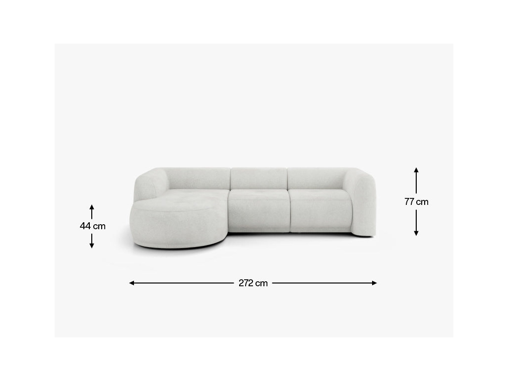 Gio v konfiguraci LL-1-1A je perfektní volbou pro ty, kteří hledají výrazný, ale zároveň jemný tvar pro moderní interiér. Charakteristický zaoblený tvar kolekce, nízké linie a plynule propojené moduly dodávají rohové pohovce lehký a ucelený vzhled a zároveň nabízí mimořádně pohodlný prostor pro každodenní relaxaci. Toto uspořádání vytváří prostornou relaxační zónu s pohodlným lehátkem, ideální jak pro odpolední relaxaci, tak pro dlouhé, klidné večery. Měkké, hluboké sedáky a jemně tvarovaná opěradla obepínají postavu a zdůrazňují ergonomický charakter nábytku. Gio vás zve k sezení – a k chvilkovému posezení.