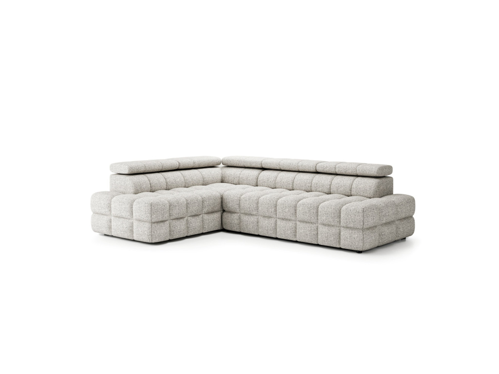 Rohová pohovka Buffalo je perfektní volbou pro ty, kteří očekávají nejen pohodlí, ale také osobitý charakter a vytříbený tvar. Zaoblené, měkké linie a dekorativní, hluboké prošívání vytvářejí pocit moderní lehkosti v kombinaci se sochařským povrchem – kus, který přitahuje pozornost a dodává každému interiéru jedinečný nádech. Pohodlí lehátka je založeno na pečlivě vybrané konstrukci: vysoce kvalitní pěna, vlnité pružiny a čalounické popruhy, díky nimž sedáky kombinují měkkost s dostatečně stabilní oporou. Hloubka sedáku (57 cm) a šířka (236 cm) zajišťují pohodlí jak pro každodenní relaxaci, tak i pro delší odpočinek.