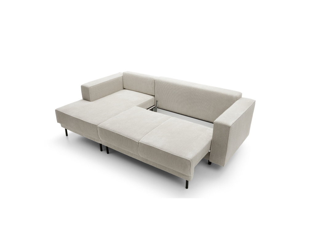 Modo I je rohová pohovka, která dokazuje, že jednoduchost může být stylová i funkční zároveň. Její čisté linie, minimalistický tvar a decentní ozdobné lemování vytvářejí kus nábytku, který se bez problémů hodí do jakéhokoli moderního prostoru – od kompaktního bytu až po prostorný obývací pokoj. Jemně tvarované opěradla a hluboký, měkký sedák vás zvou k relaxaci – bez ohledu na denní dobu. Díky praktické funkci spaní se Modo I snadno promění v pohodlnou postel a poskytne vám další prostor pro regeneraci. A prostorný úložný prostor na ložní prádlo vám umožní udržet si pořádek a mít vše potřebné vždy po ruce.