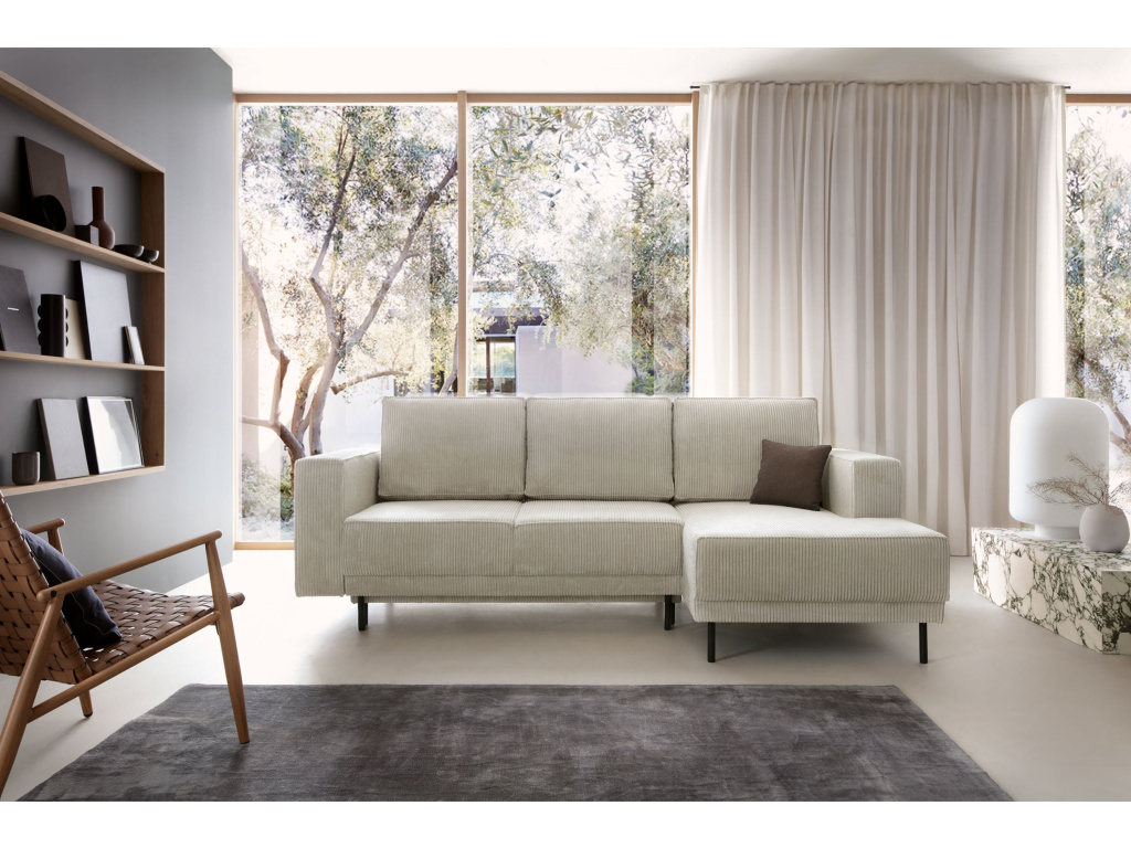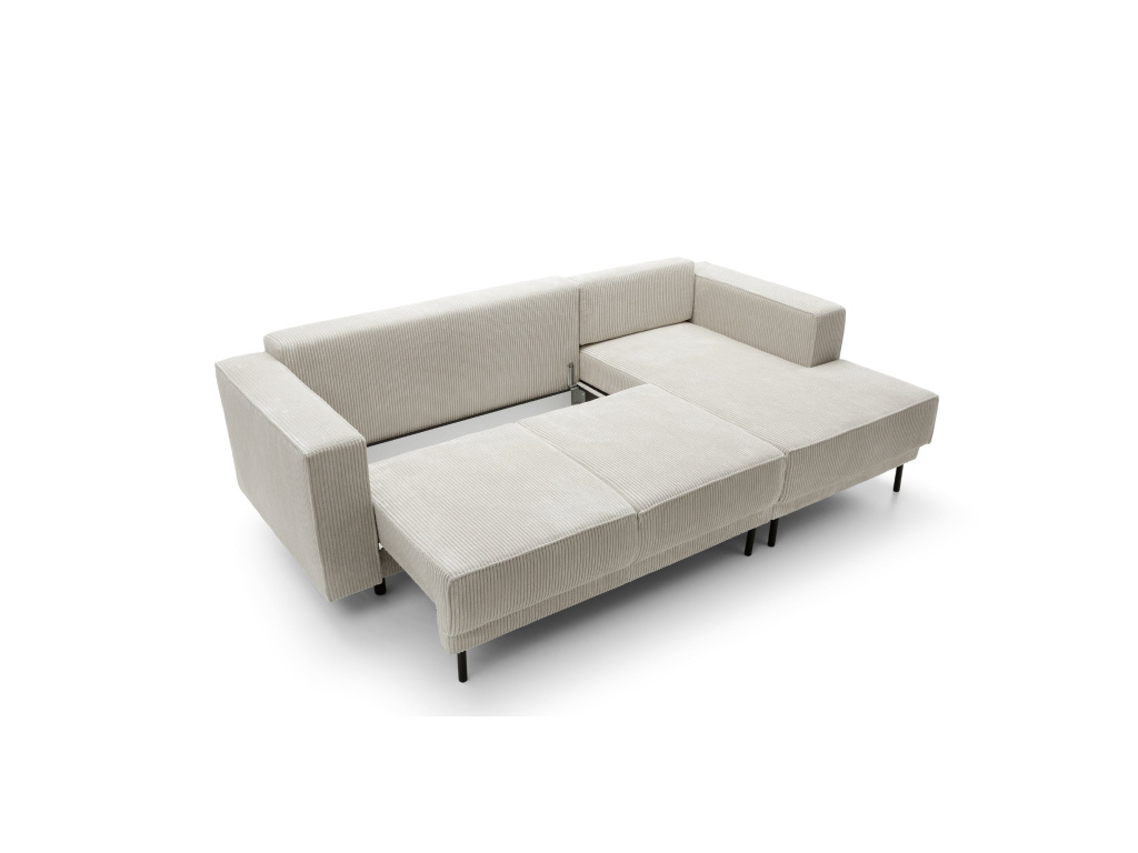 Modo I je rohová pohovka, která dokazuje, že jednoduchost může být stylová i funkční zároveň. Její čisté linie, minimalistický tvar a decentní ozdobné lemování vytvářejí kus nábytku, který se bez problémů hodí do jakéhokoli moderního prostoru – od kompaktního bytu až po prostorný obývací pokoj. Jemně tvarované opěradla a hluboký, měkký sedák vás zvou k relaxaci – bez ohledu na denní dobu. Díky praktické funkci spaní se Modo I snadno promění v pohodlnou postel a poskytne vám další prostor pro regeneraci. A prostorný úložný prostor na ložní prádlo vám umožní udržet si pořádek a mít vše potřebné vždy po ruce.