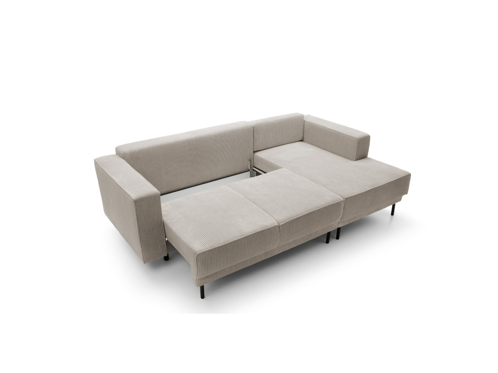 Modo I je rohová pohovka, která dokazuje, že jednoduchost může být stylová i funkční zároveň. Její čisté linie, minimalistický tvar a decentní ozdobné lemování vytvářejí kus nábytku, který se bez problémů hodí do jakéhokoli moderního prostoru – od kompaktního bytu až po prostorný obývací pokoj. Jemně tvarované opěradla a hluboký, měkký sedák vás zvou k relaxaci – bez ohledu na denní dobu. Díky praktické funkci spaní se Modo I snadno promění v pohodlnou postel a poskytne vám další prostor pro regeneraci. A prostorný úložný prostor na ložní prádlo vám umožní udržet si pořádek a mít vše potřebné vždy po ruce.