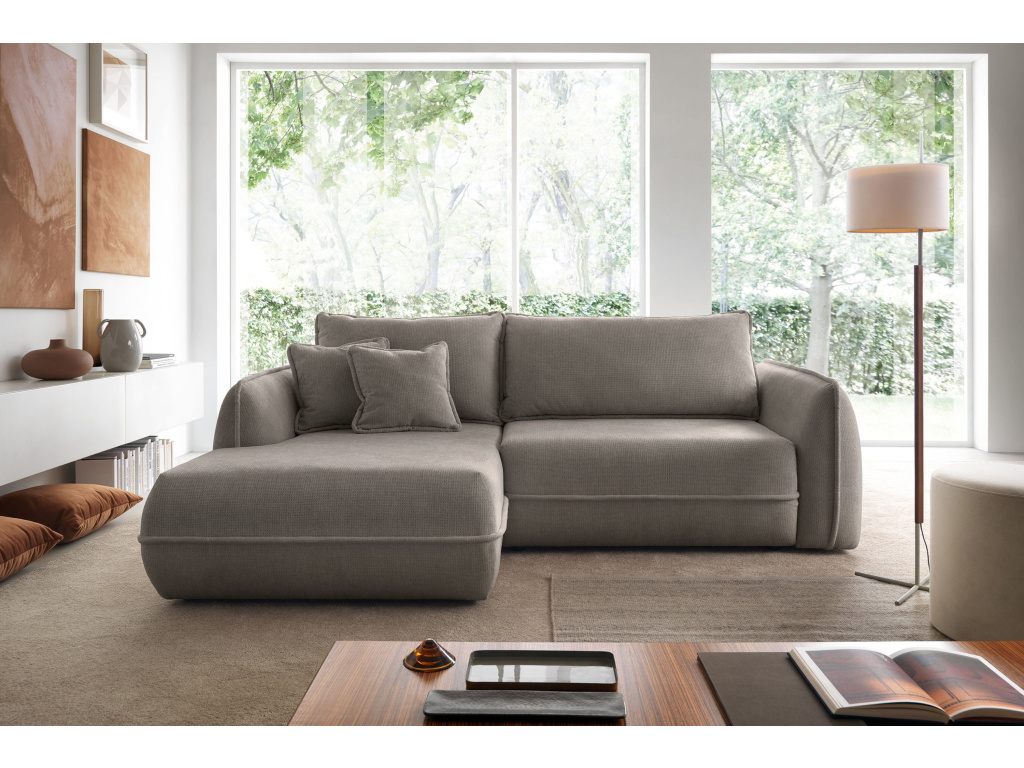 Rohová pohovka Moho kombinuje moderní, klidnou estetiku s praktickými řešeními, která jsou ideální pro každodenní použití. Její zaoblený, měkký tvar a zaoblené područky dodávají každému interiéru útulný charakter a relaxační atmosféru. Díky harmonickým liniím se perfektně hodí jak do světlých, minimalistických interiérů, tak i do klasičtějších prostor. Tato rohová pohovka s šířkou 254 cm nabízí dostatek prostoru pro relaxaci, zatímco pohodlná rohová část o hloubce 162 cm vám umožní se protáhnout a relaxovat. Šířka sedáku 195 cm a pohodlná hloubka polštáře 63 cm zajišťují pohodlí jak při sezení, tak i při delším odpočinku. Měkká opěradla a polštáře podporují relaxaci a navozují útulnou atmosféru.