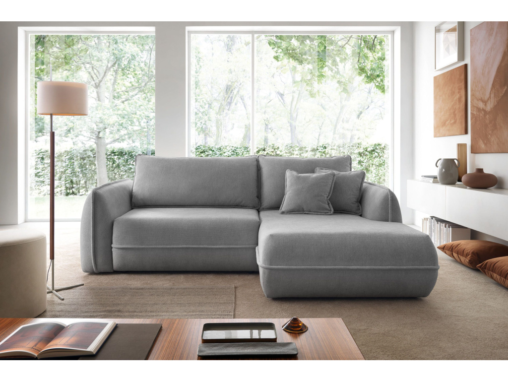Rohová pohovka Moho kombinuje moderní, klidnou estetiku s praktickými řešeními, která jsou ideální pro každodenní použití. Její zaoblený, měkký tvar a zaoblené područky dodávají každému interiéru útulný charakter a relaxační atmosféru. Díky harmonickým liniím se perfektně hodí jak do světlých, minimalistických interiérů, tak i do klasičtějších prostor. Tato rohová pohovka s šířkou 254 cm nabízí dostatek prostoru pro relaxaci, zatímco pohodlná rohová část o hloubce 162 cm vám umožní se protáhnout a relaxovat. Šířka sedáku 195 cm a pohodlná hloubka polštáře 63 cm zajišťují pohodlí jak při sezení, tak i při delším odpočinku. Měkká opěradla a polštáře podporují relaxaci a navozují útulnou atmosféru.