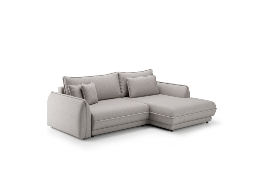 Mojave I je rohová pohovka s funkcí spaní a úložným prostorem na ložní prádlo, navržená pro ty, kteří si cení moderního minimalismu a nadčasového pohodlí. Její jednoduchý tvar je umocněn ozdobným lemováním, které jemně zdůrazňuje linie nábytku a polštářů. Výsledkem je pozoruhodně elegantní a vzdušný celkový vzhled, který dokonale doplňuje moderní i klasický interiér.