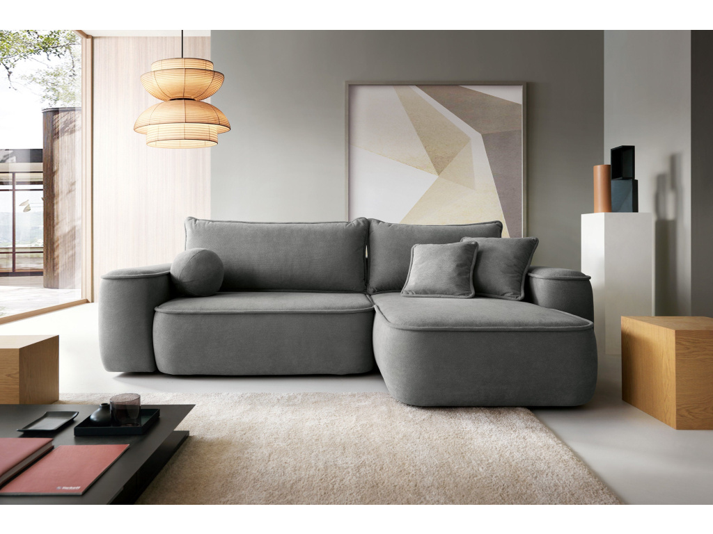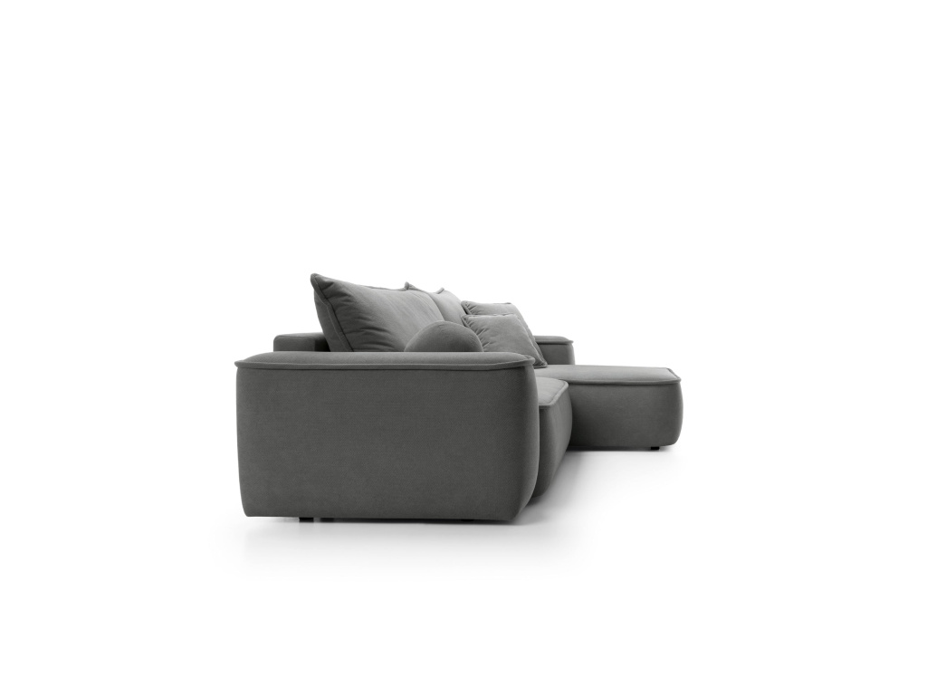 Sandby je rohová pohovka, která zaujme svým harmonickým, zaobleným tvarem a mimořádně útulným charakterem. Její moderní, ale nadčasový tvar, založený na jemných liniích, z ní činí ideální volbu jak pro světlé, minimalistické interiéry, tak i pro teplejší, útulné prostředí. Absence ostrých hran, zaoblené područky a decentně tvarované sedáky dodávají celému kusu nábytku lehkost a vizuální jemnost. Rohová pohovka Sandby má univerzální design, což znamená, že můžete měnit strany – zprava doleva – v závislosti na uspořádání místnosti. Díky tomu ji snadno zapadne do vašeho obývacího pokoje bez ohledu na jeho velikost a design.