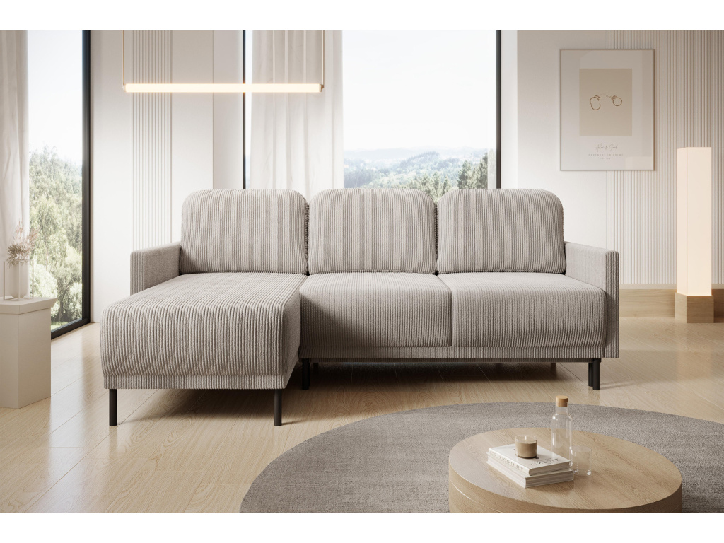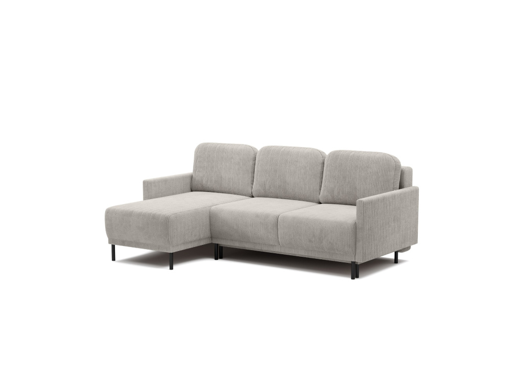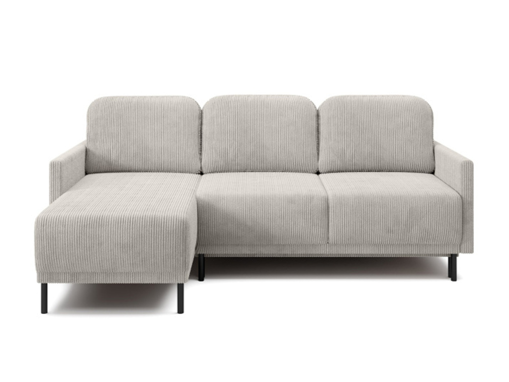 Jeho univerzální design umožňuje jakékoli umístění – jak pro leváky, tak pro praváky – takže se snadno hodí do jakéhokoli interiéru. Výrazné, jemně texturované čalounění dodává nábytku útulnost a vizuální teplo, zatímco minimalistický tvar s jednoduchými liniemi zdůrazňuje moderní charakter nábytku. Výplň s využitím vlnitých pružin v sedáku i opěradle poskytuje optimální oporu a vysoké pohodlí i při delší relaxaci. Úzké područky a štíhlé kovové nohy dodávají designu lehkost a eleganci, aniž by to ohrozilo pevnou konstrukci.