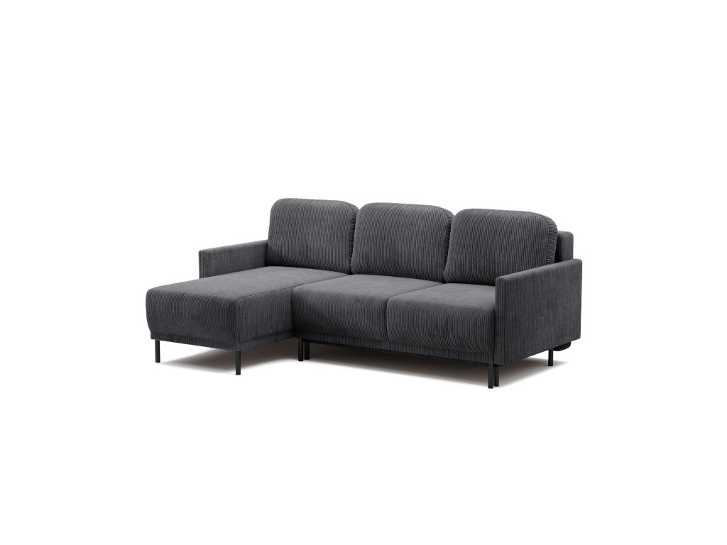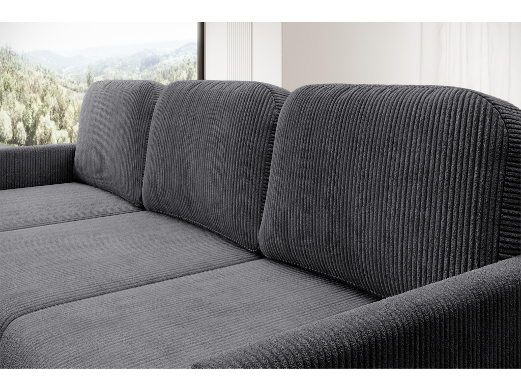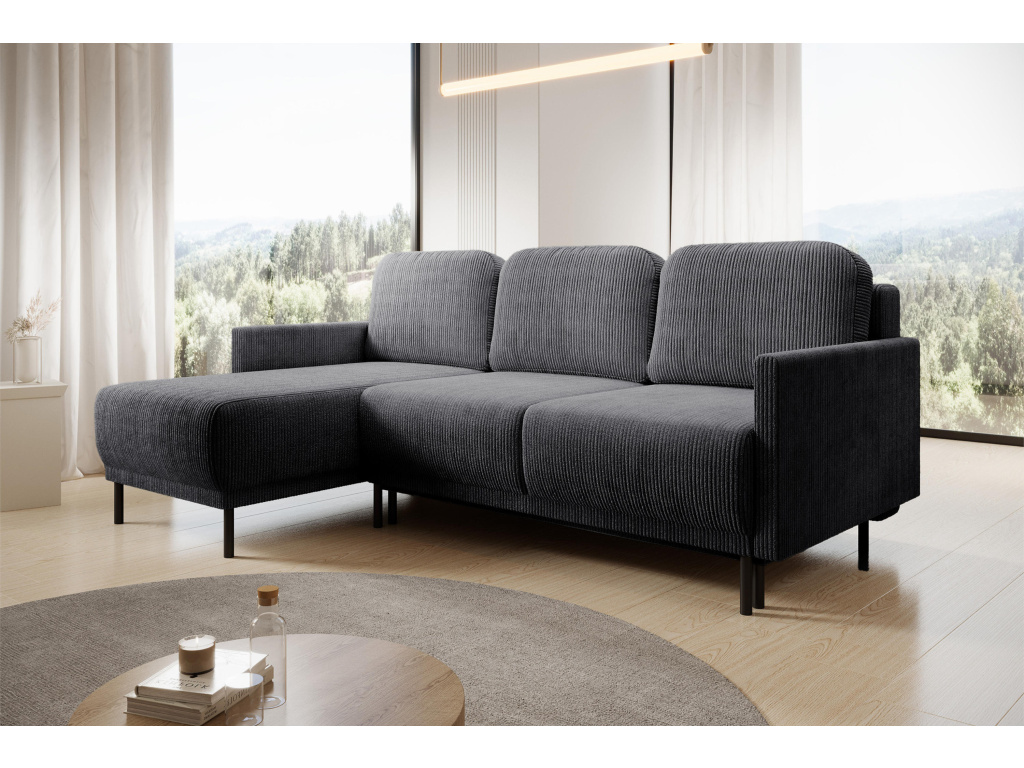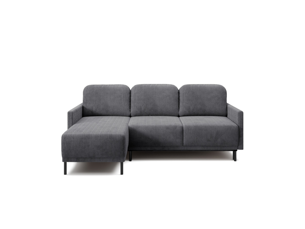 Jeho univerzální design umožňuje jakékoli umístění – jak pro leváky, tak pro praváky – takže se snadno hodí do jakéhokoli interiéru. Výrazné, jemně texturované čalounění dodává nábytku útulnost a vizuální teplo, zatímco minimalistický tvar s jednoduchými liniemi zdůrazňuje moderní charakter nábytku. Výplň s využitím vlnitých pružin v sedáku i opěradle poskytuje optimální oporu a vysoké pohodlí i při delší relaxaci. Úzké područky a štíhlé kovové nohy dodávají designu lehkost a eleganci, aniž by to ohrozilo pevnou konstrukci.