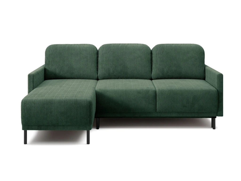 Jeho univerzální design umožňuje jakékoli umístění – jak pro leváky, tak pro praváky – takže se snadno hodí do jakéhokoli interiéru. Výrazné, jemně texturované čalounění dodává nábytku útulnost a vizuální teplo, zatímco minimalistický tvar s jednoduchými liniemi zdůrazňuje moderní charakter nábytku. Výplň s využitím vlnitých pružin v sedáku i opěradle poskytuje optimální oporu a vysoké pohodlí i při delší relaxaci. Úzké područky a štíhlé kovové nohy dodávají designu lehkost a eleganci, aniž by to ohrozilo pevnou konstrukci.