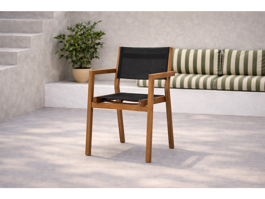 Stohovací židle Venice, sada 2 ks - teak / černý textilen
