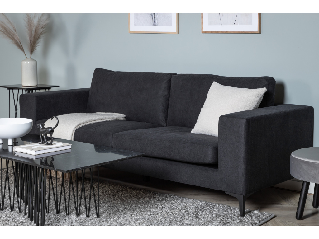 Trojmístná pohovka BOLERO představuje spojení moderní elegance, pohodlí a kvalitního zpracování. Vyzdobte si domov klasickou pohovkou ze série Bolero pro elegantní a stylový vzhled! Tato luxusní černá 2-3místná pohovka s polyesterovým čalouněním má rovný, jednoduchý a nadčasový design. Široké područky dodávají designovému jazyku váhu a rovný povrch skvěle slouží jako sedací plocha! Vysoký komfort sezení pohovky vás vybízí k dlouhým a příjemným chvílím na pohovce, tak se usaďte, relaxujte a užívejte si! Rady k péči: Ujistěte se, že váš nábytek není vystaven přímému slunečnímu záření. Před použitím textil impregnujte textil sprejem, který také usnadní odstranění nečistot a skvrn v budoucnu. Skvrny odstraňte ihned, netřete, ale zkuste jemně vysát hadříkem. Pokud skvrny nezmizí, vyzkoušejte odstraňovač skvrn, který jste nejprve vyzkoušeli na méně viditelné části látky.