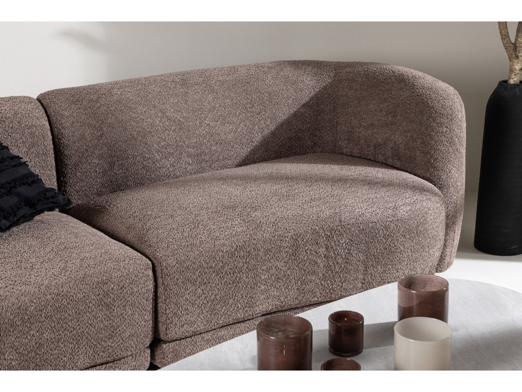 Trojmístná pohovka CIELO představuje spojení moderní elegance, pohodlí a kvalitního zpracování. Objevte harmonii a pohodlí naší pohovky Cielo v hnědém bouclé. Tato prostorná pohovka je ideální pro setkávání rodiny a vytváření nezapomenutelných společných chvil. Díky své zemité barevné paletě a klidnému vzhledu se Cielo stane klidnou oázou ve vašem domově. Zaoblené hrany a měkké prolisy pohovky jí dodávají příjemnou a vlídnou atmosféru. Díky příjemnému designu je ideální volbou pro relaxaci a útulné chvíle s blízkými. Dopřejte svému obývacímu pokoji nádech klidu a pohody s pohovkou Cielo v hnědém bouclé. Místo, kde si můžete odpočinout a vychutnat si každý okamžik a zároveň si užívat útulnou atmosféru, kterou vytváří.