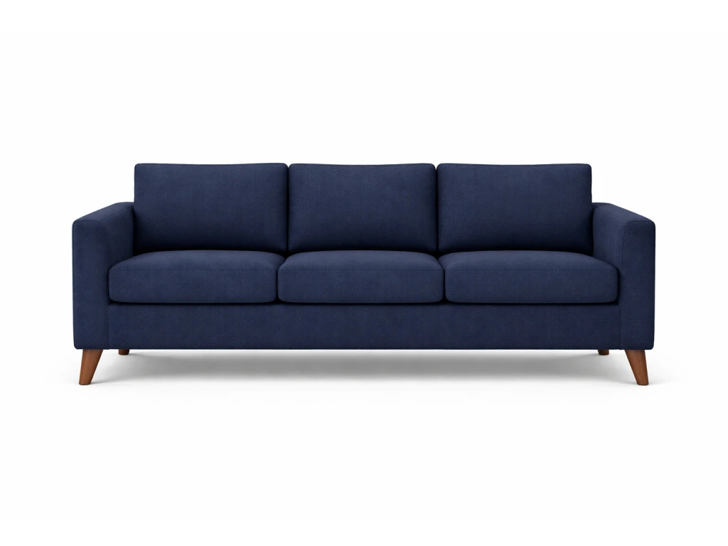 Trojmístná pohovka Focus Softnord v tmavě modrém potahu Verona 16/2 dark blue (skupina 2) je dominantním prvkem každého obývacího pokoje. Teplé dřevěné nohy v ořechovém provedení Wood walnut H-145 tvoří krásný kontrast s výraznou modrou barvou. Standardní polyuretanová výplň zajišťuje komfortní sezení a dlouhou životnost.