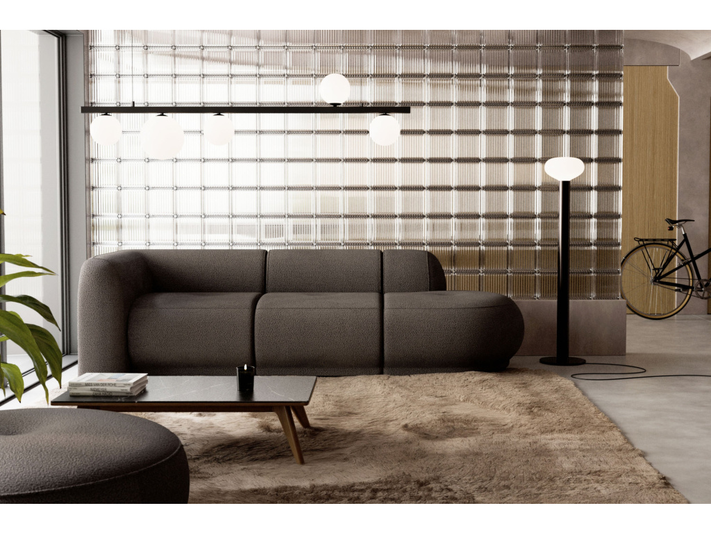 Gio v konfiguraci A1-1-OTTR je modulární pohovka, která kombinuje moderní estetiku s výjimečným pohodlím. Charakteristický zaoblený tvar kolekce, nízké linie a měkké přechody mezi moduly dodávají celému kusu decentní, ale zároveň výrazný charakter. Pohovka působí lehkým a harmonickým dojmem, který se dokonale hodí do moderních obytných prostor. Dispozice A1-1-OTTR nabízí pohodlný obývací prostor s otevřenou relaxační zónou, která vás přirozeně vybízí k odpočinku. Hluboké, měkce tvarované sedáky a zaoblené opěradla poskytují vysokou úroveň ergonomie, ideální jak pro každodenní použití, tak pro delší relaxaci. Tvar viditelný na fotografii zdůrazňuje klidný, zaoblený charakter pohovky a její dekorativní funkci v obývacím pokoji.