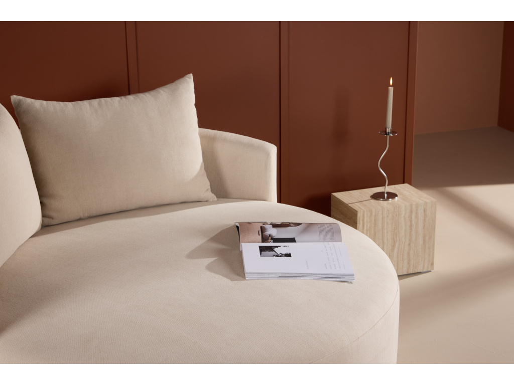 Dodá vašemu domovu jedinečný a stylový nádech s kulatou pohovkou Kelso čalouněnou elegantním béžovým lnem. Díky svému impozantnímu průměru 150 cm se Kelso stává ústředním a poutavým kusem nábytku v každé místnosti, ve které je umístěna. Béžová lněná látka dodává pohovce přirozený a sofistikovaný vzhled, který ladí s různými styly interiéru, od moderního minimalismu až po klasickou eleganci. Lněná látka je nejen krásná, ale také odolná a měkká, díky čemuž je Kelso příjemným místem k relaxaci. Kulatý tvar Kelso vytváří okamžitý pocit sounáležitosti a komunity, ideální pro setkání s rodinou a přáteli. Jeho velkorysá hloubka sedáku a pečlivě navržené opěradlo zajišťují, že pohovka nejen fantasticky vypadá, ale také nabízí pohodlné sezení. Kelso je ideální do větších obývacích pokojů nebo otevřených prostor, kde může sloužit jako ústřední kus nábytku a místo setkávání. Ať už ji používáte k relaxaci s knihou, k setkání s hosty nebo k prosté chvilce klidu, pohovka Kelso je vyjádřením stylu i pohodlí. Nechte pohovku Kelso z béžového lněného čalounění stát se elegantním ústředním bodem vašeho domova, kde její jedinečný design a zaoblený tvar vytvářejí atmosféru klidu a sofistikovaného šarmu.