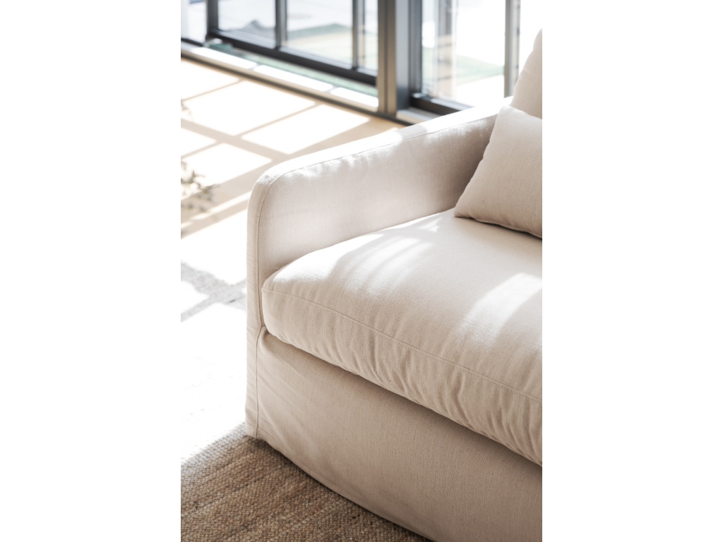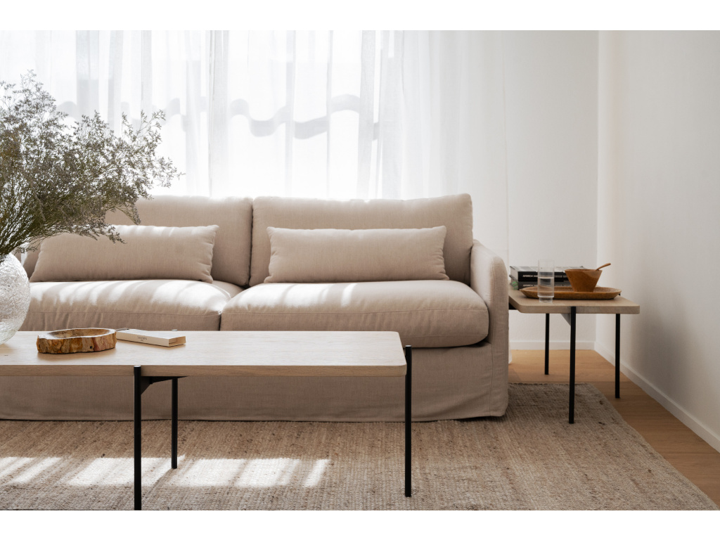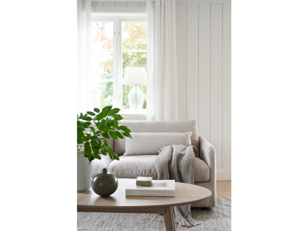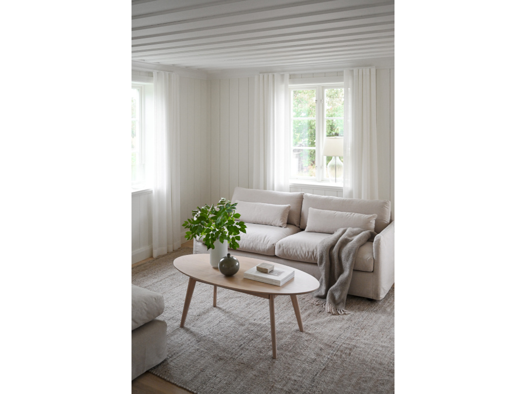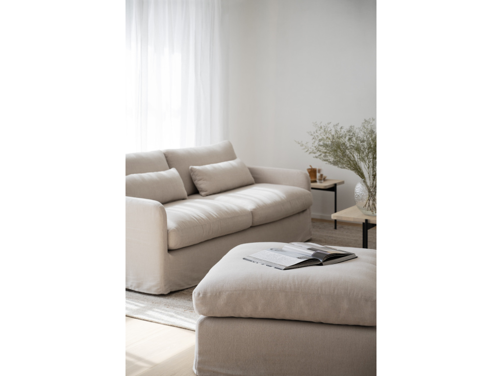 Pohovka Peyton v elegantní světle béžové látce připomínající len vnese do vašeho obývacího pokoje nadčasový a pohodlný pocit. Tato pohovka kombinuje moderní design s odolnou látkou, která obstojí ve zkoušce času. Sedák je vybaven hadovitými pružinami pro rovnoměrné a dlouhotrvající pohodlí a volnými opěradly, které přispívají k uvolněnému sezení. Pohovka, vyrobená ze dřeva s certifikací FSC®, zaručuje nejen styl, ale také udržitelnost a podporuje odpovědné lesnictví. Je ideální pro klasické i moderní domy, které si cení designu a environmentálních aspektů.Doplňkové parametry