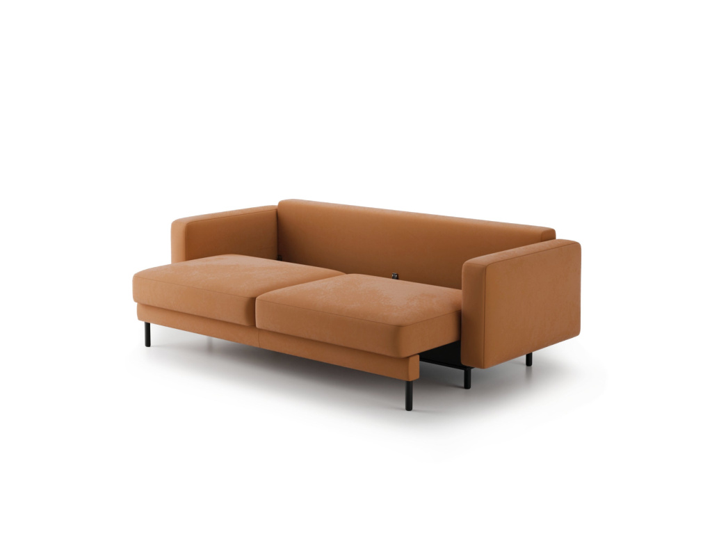 Jeho skrytá funkce spaní umožňuje okamžitou proměnu – z elegantní pohovky na pohodlnou postel. Prostorný úložný prostor na ložní prádlo je chytrým řešením pro moderní interiéry, kde by každá věc měla mít své místo. Vysoké nohy dodávají tvaru nádech lehkosti a způsobují, že se kus nábytku vznáší nad podlahou, a zároveň usnadňují udržování pořádku.