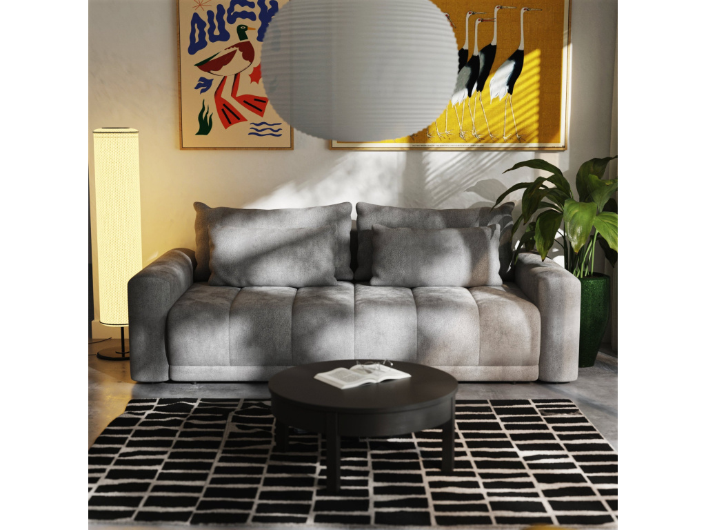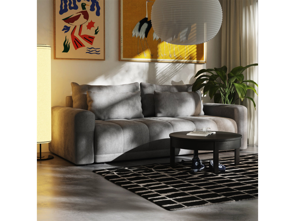 Billund navíc není jen o formě – zahrnuje také praktická řešení skrytá pod jejím stylovým povrchem. Díky své funkci spaní se okamžitě promění v pohodlnou postel a prostorný úložný prostor pro ložní prádlo usnadňuje udržování pořádku a organizace v obývacím pokoji. Tato pohovka splňuje požadavky každodenního života – je krásná, pohodlná a všestranná.