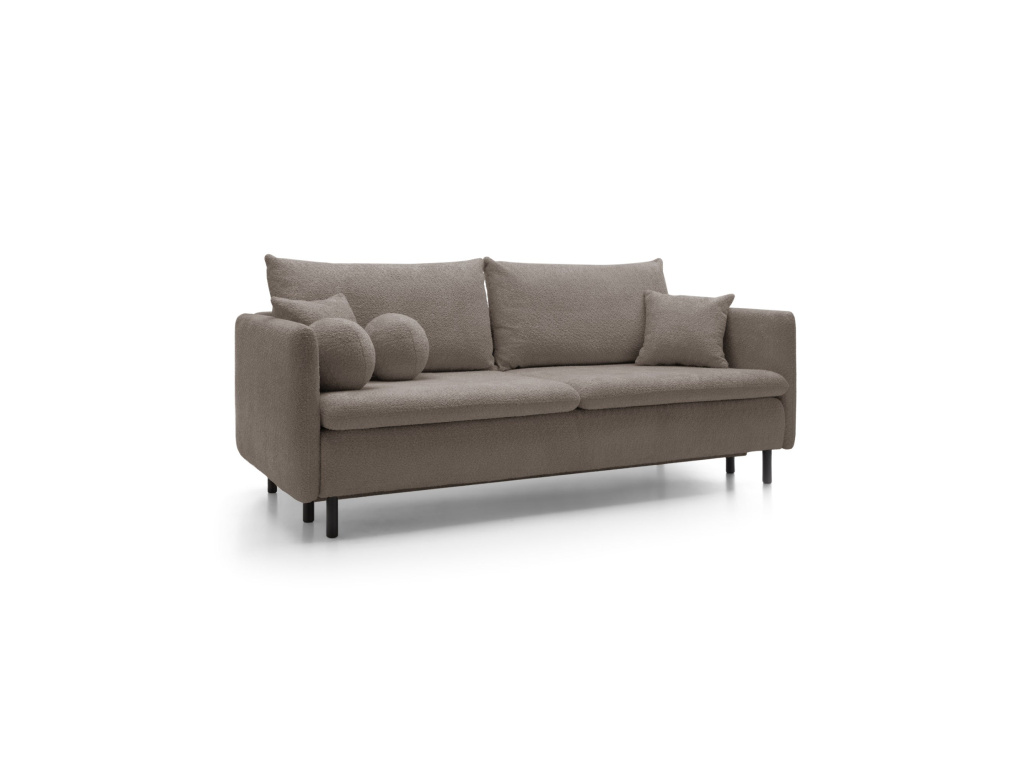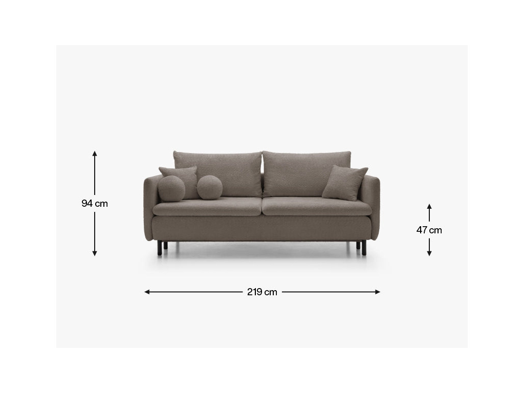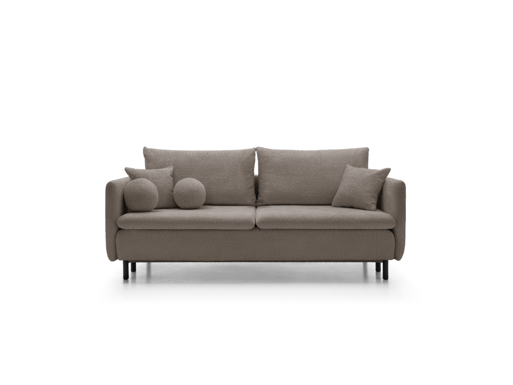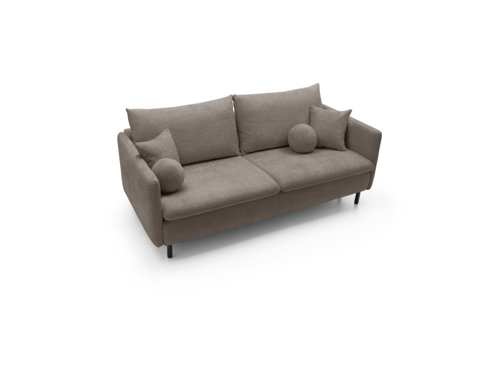Jeho jednoduchý, harmonický tvar s jemně zaoblenými područkami a měkkými liniemi mu dodává jemné kouzlo a zároveň zdůrazňuje jeho minimalistický charakter. Široký a pohodlný sedák vybízí k relaxaci, zatímco velkorysé polštáře v opěradle zaručují maximální pohodlí. Dekorativní polštáře v různých tvarech dodávají pohovce jedinečný nádech a hravý nádech jejímu decentnímu a elegantnímu tvaru.