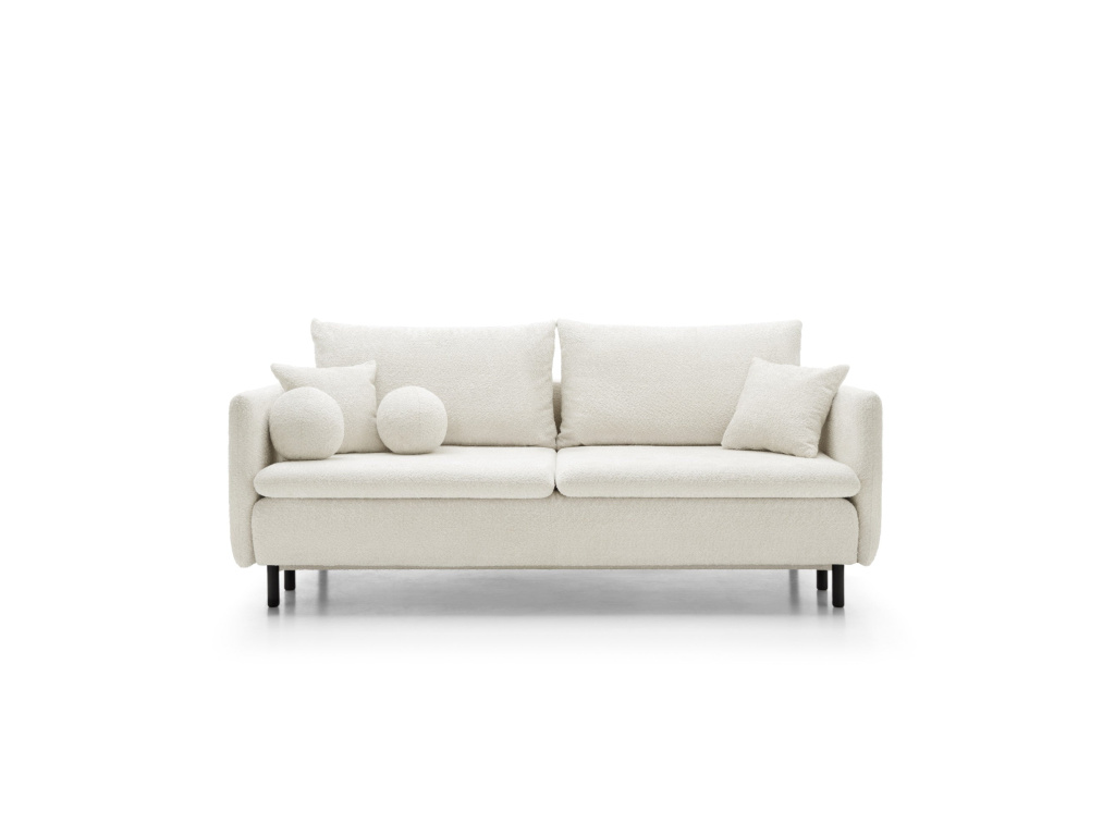 Jeho jednoduchý, harmonický tvar s jemně zaoblenými područkami a měkkými liniemi mu dodává jemné kouzlo a zároveň zdůrazňuje jeho minimalistický charakter. Široký a pohodlný sedák vybízí k relaxaci, zatímco velkorysé polštáře v opěradle zaručují maximální pohodlí. Dekorativní polštáře v různých tvarech dodávají pohovce jedinečný nádech a hravý nádech jejímu decentnímu a elegantnímu tvaru.