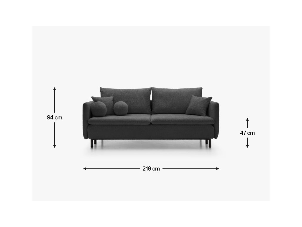 Jeho jednoduchý, harmonický tvar s jemně zaoblenými područkami a měkkými liniemi mu dodává jemné kouzlo a zároveň zdůrazňuje jeho minimalistický charakter. Široký a pohodlný sedák vybízí k relaxaci, zatímco velkorysé polštáře v opěradle zaručují maximální pohodlí. Dekorativní polštáře v různých tvarech dodávají pohovce jedinečný nádech a hravý nádech jejímu decentnímu a elegantnímu tvaru.