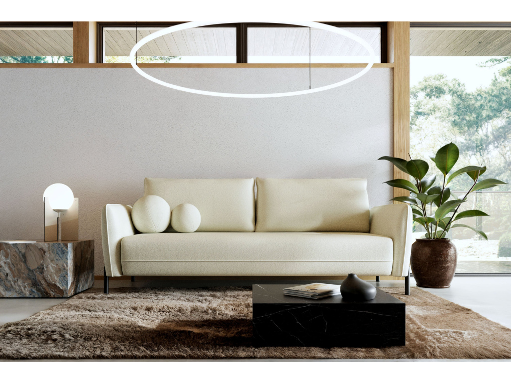Pohovka Vasco je ztělesněním moderního minimalismu v kombinaci s pohodlím a funkčností. Její decentní tvar, elegantní linie a elegantní látka Puente z ní činí ideální volbu pro moderní interiéry – od prostorných obývacích pokojů až po intimní byty. Celková šířka pohovky je 215 cm, výška 94 cm a hloubka 96 cm – tyto proporce zajišťují nejen elegantní vzhled, ale i maximální pohodlí. Sedák o šířce 198 cm a výšce 48 cm spolu s měkkými polštáři opěradla zaručují pohodlí jak pro každodenní relaxaci, tak pro delší setkání s rodinou nebo přáteli. Vysoké područky (62 cm) dodávají pohovce vizuální lehkost a zároveň zvyšují pohodlí.