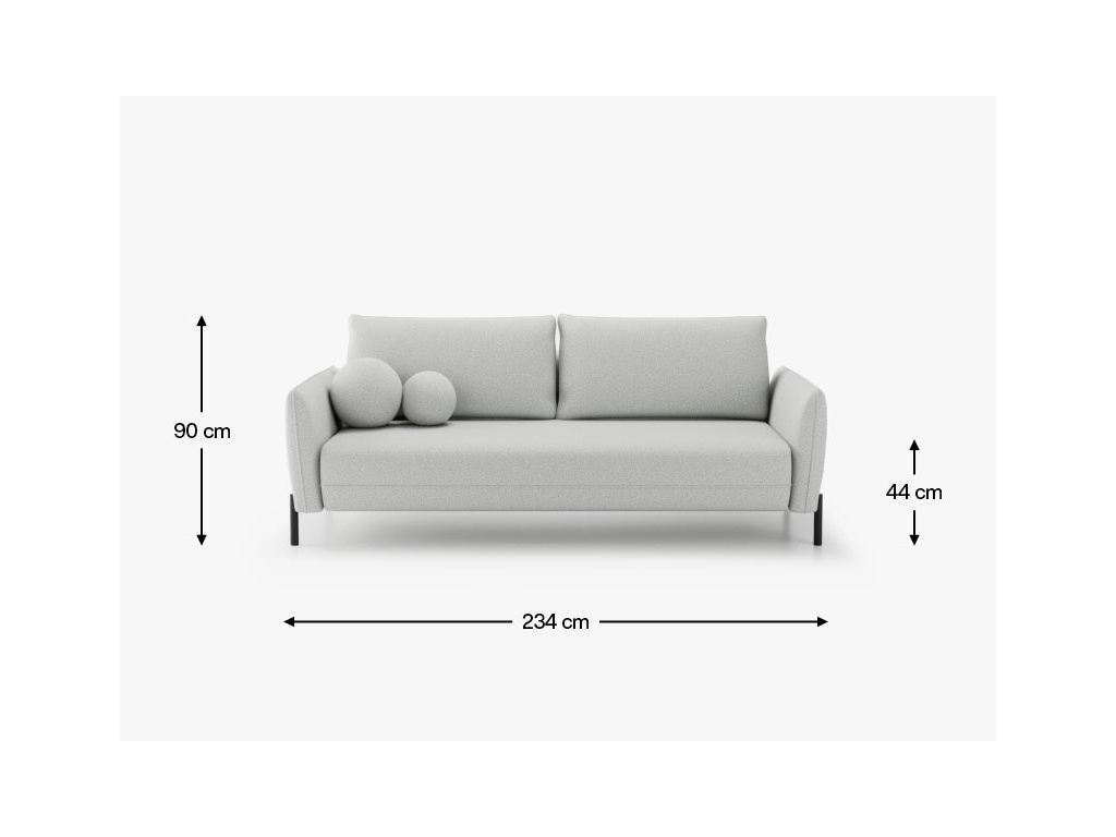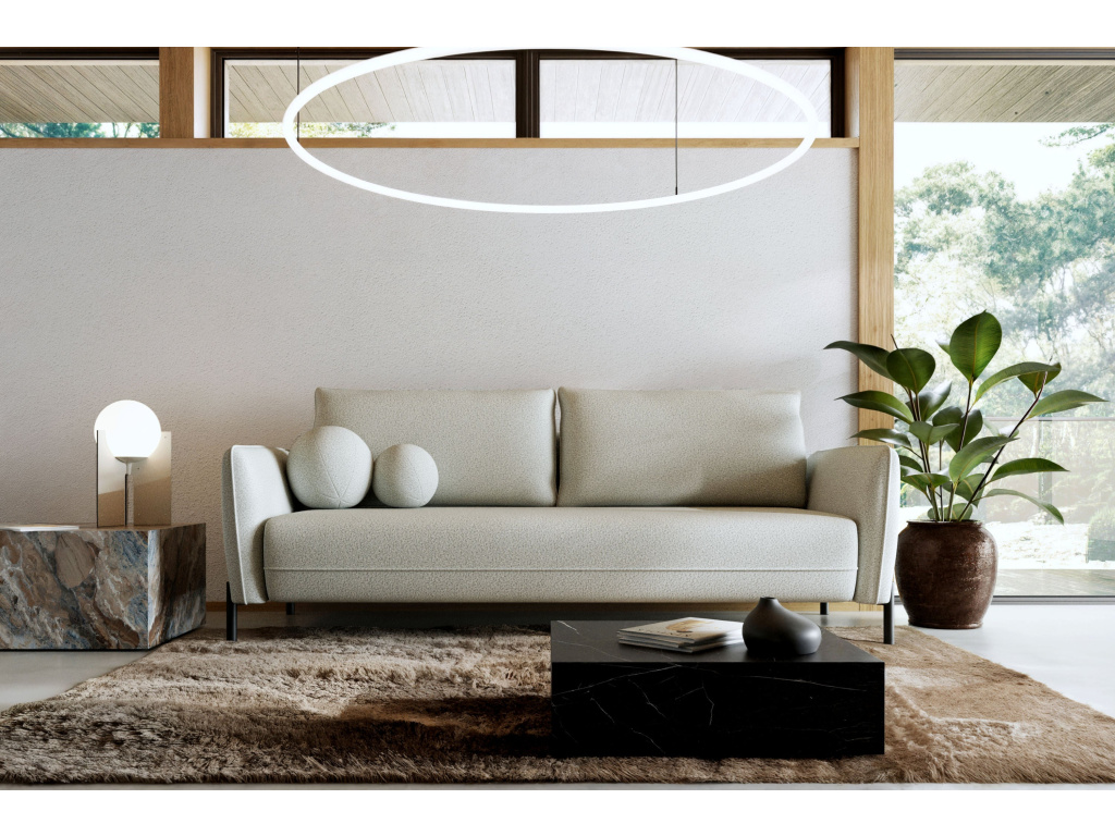 Pohovka Vasco je ztělesněním moderního minimalismu v kombinaci s pohodlím a funkčností. Její decentní tvar, elegantní linie a elegantní látka Puente z ní činí ideální volbu pro moderní interiéry – od prostorných obývacích pokojů až po intimní byty. Celková šířka pohovky je 215 cm, výška 94 cm a hloubka 96 cm – tyto proporce zajišťují nejen elegantní vzhled, ale i maximální pohodlí. Sedák o šířce 198 cm a výšce 48 cm spolu s měkkými polštáři opěradla zaručují pohodlí jak pro každodenní relaxaci, tak pro delší setkání s rodinou nebo přáteli. Vysoké područky (62 cm) dodávají pohovce vizuální lehkost a zároveň zvyšují pohodlí.